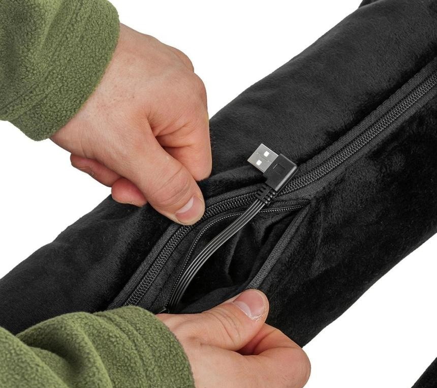 Разъемная конструкция муфты позволяет использовать ее также в качестве подогрева сиденья рыболовного ящика, туристического стула или для утепления зоны поясницы.