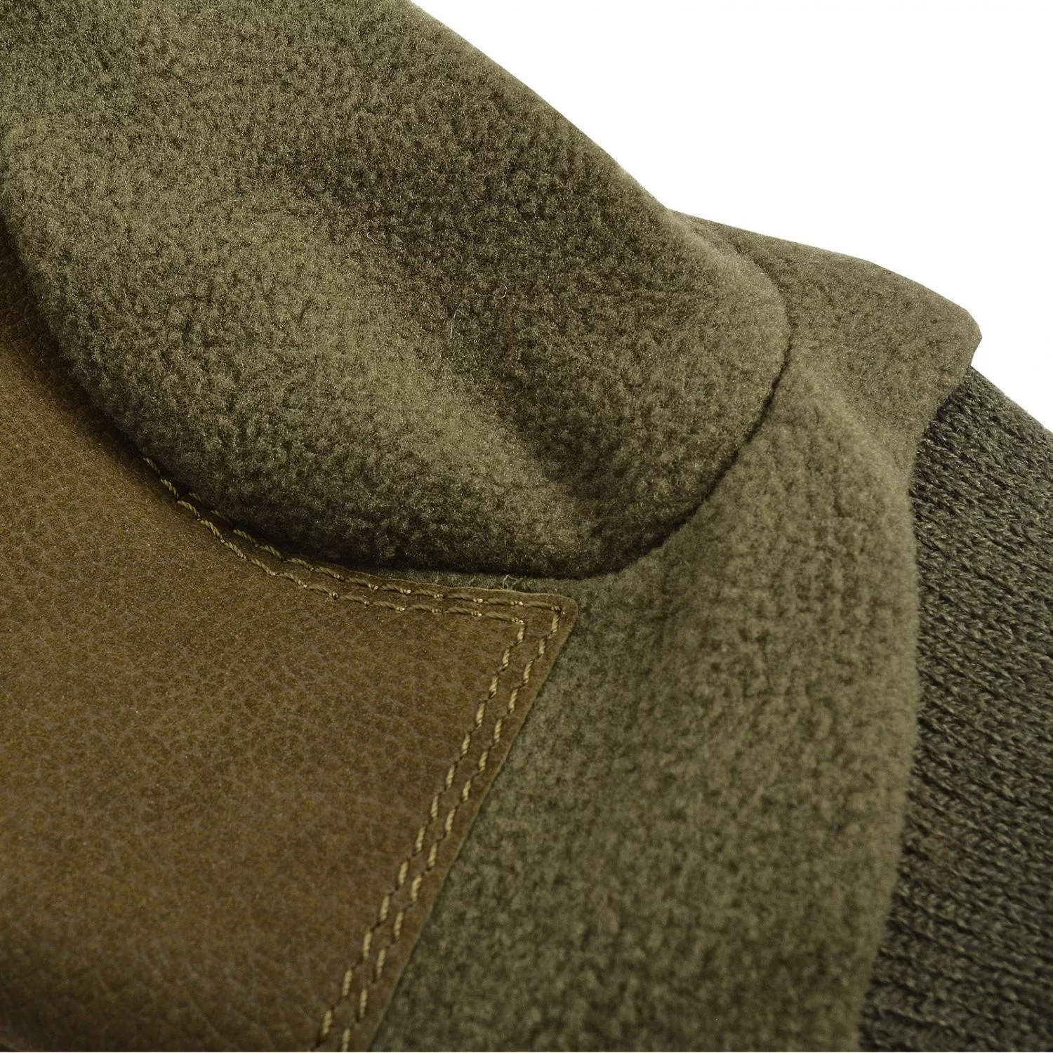 - Износостойкие накладки: Усиленные вставки из натурального нубука на ладонях и большом пальце гарантируют надежное сцепление с рыболовными снастями, оружием и инструментами, продлевая срок службы перчаток.
