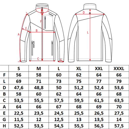62 | XXXL | 124 | 120 | 128 | 65 | 50 | 52 | 56 | 60 |