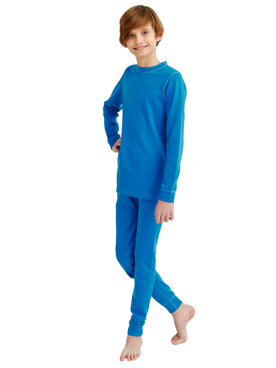 - Комплект: Термобелье детское и подростковое, двухслойное, цветное. Фуфайка-унисекс, кальсоны с ластовицей, низ на манжете.