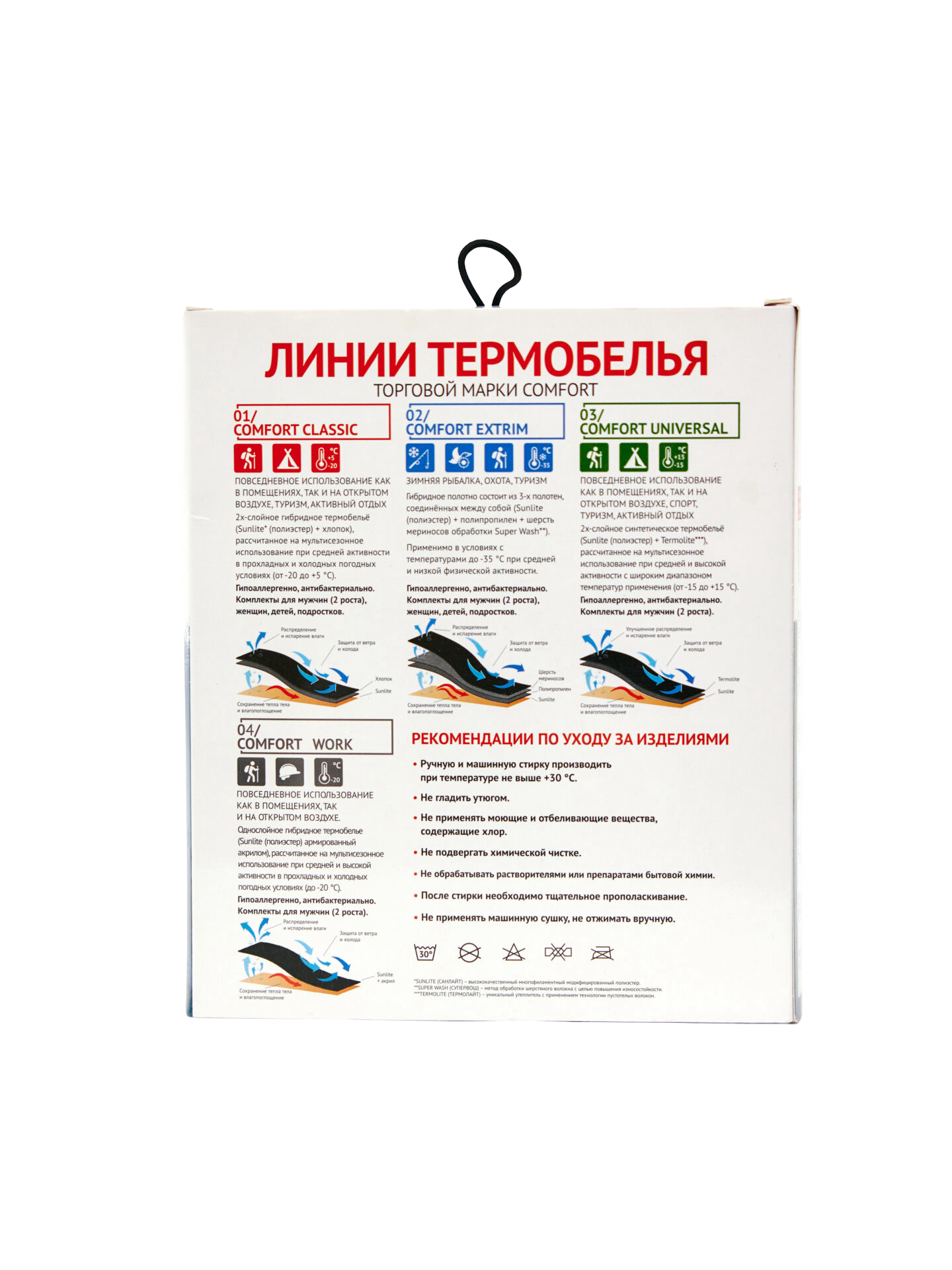 - Комплект: футболка с длинным рукавом, круглый вырез, длинные кальсоны, закрытая резинка, эластичные манжеты.