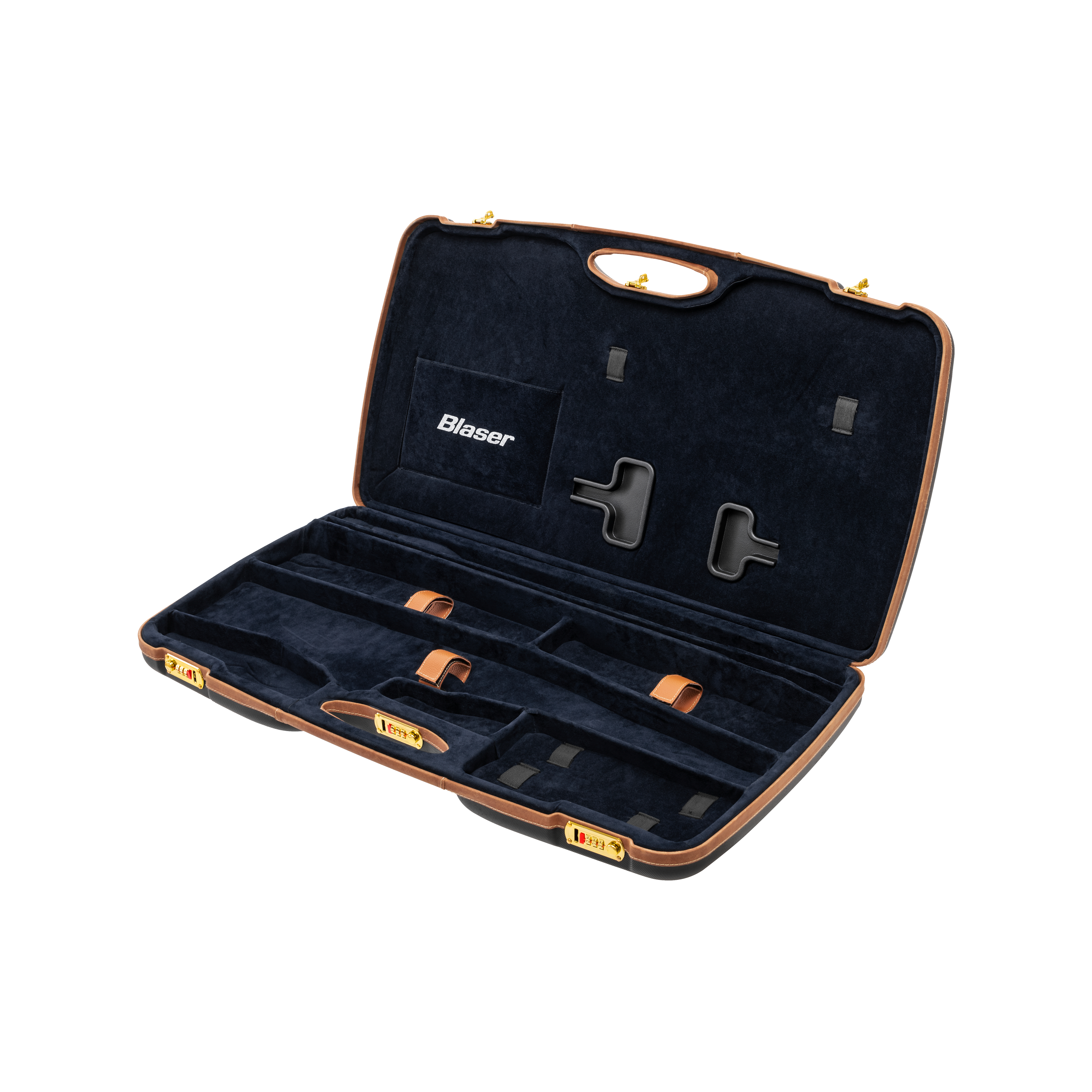Кейс от компании Blaser предназначен для транспортировки и хранения оружия. Корпус двойной, выполнен из ABS-пластикаABS-пластик - ударопрочная техническая термопластическая смола на основе сополимера акрилонитрила с бутадиеном и стиролом (название пластика образовано из начальных букв наименований мономеров).Подробнее, что обеспечивает надежную защиту от механических повреждений. Внутренняя часть отделана бархатом. Для запирания имеются три кодовых замка. Кейс позволяет разместить внутри два ствола длиной до 700 мм, приклад длиной до 420 мм; прицел диаметром до 56 мм. Также имеются отделения для документов и ключей в крышке.