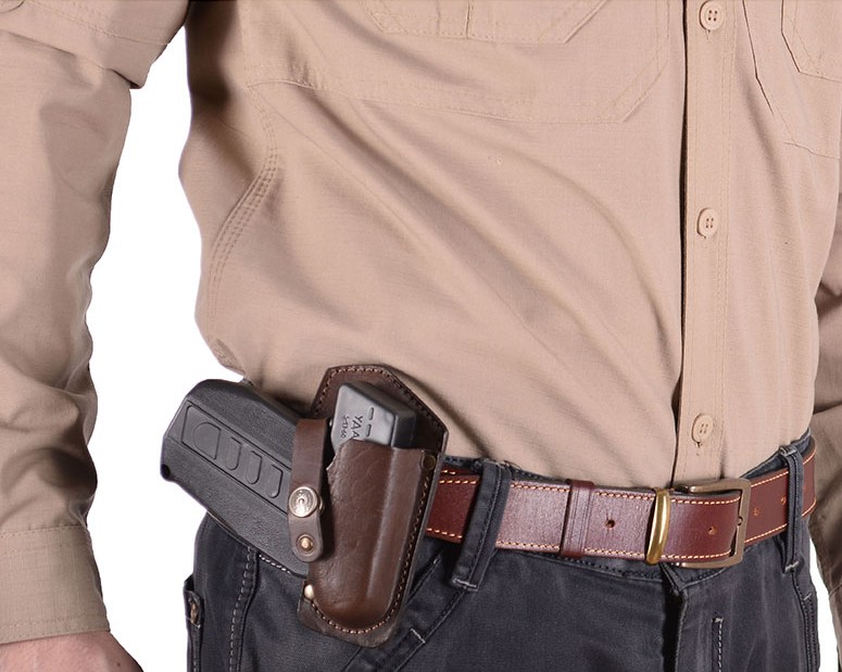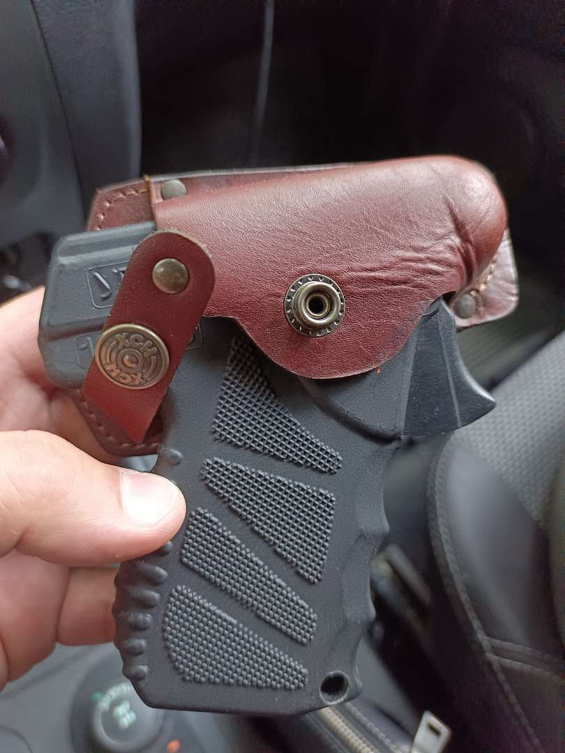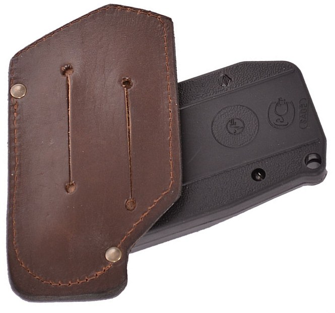Кобура «Удар» изготовлена из кожи специальной выделки высокого качества. Благодаря уникальности материала она лёгкая и удобная. За счет правильного распределения центра тяжести, вес пистолета в кобуре не ощутим на теле и она легко маскируется под одеждой. Серия «Люкс».