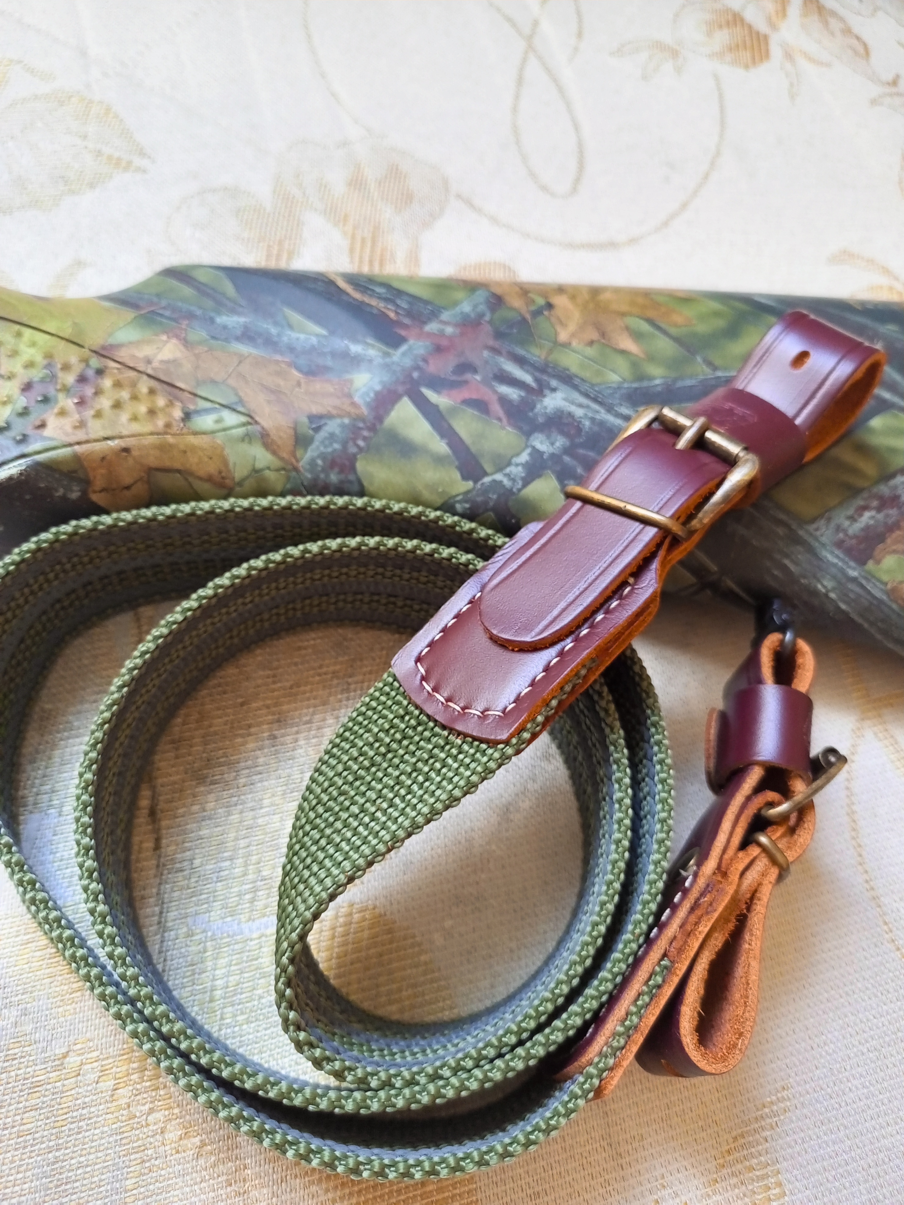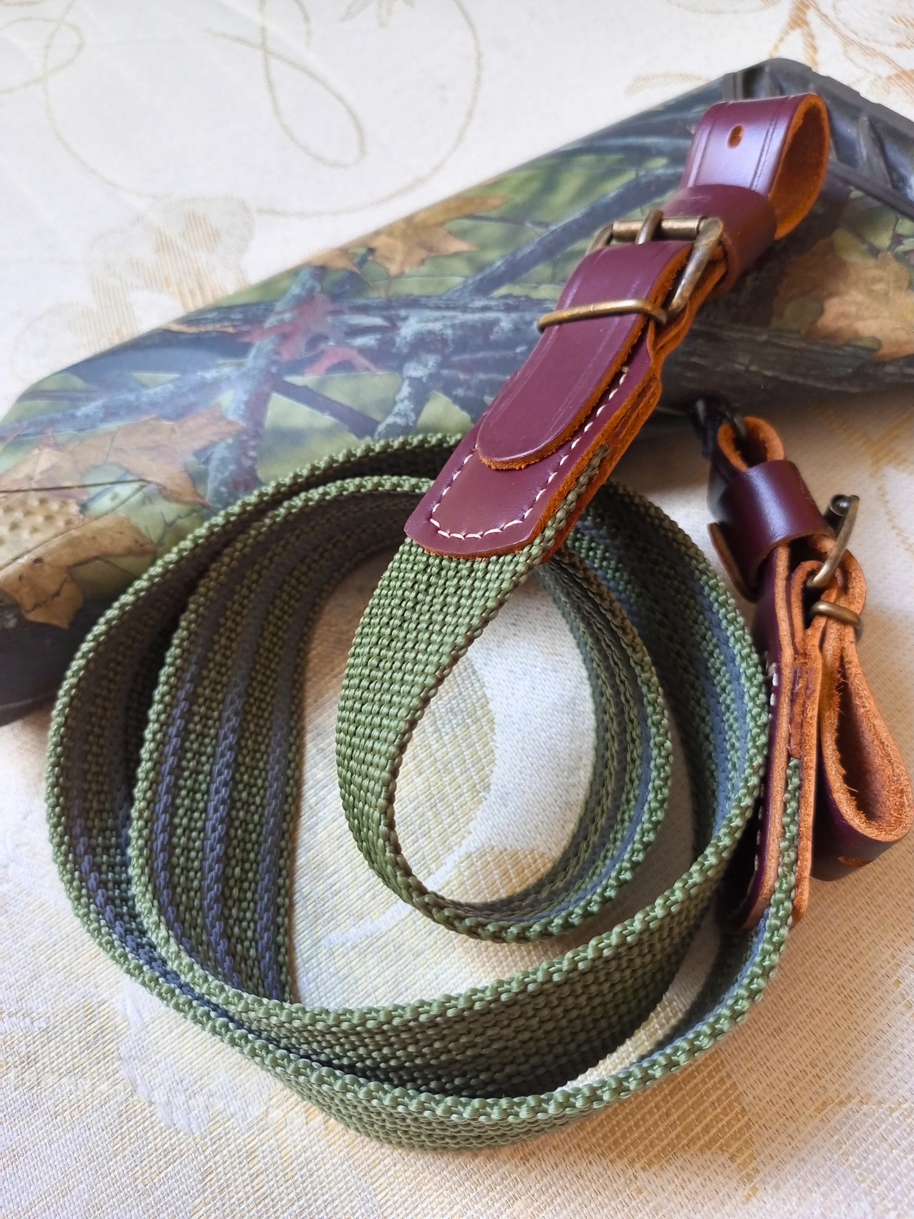 Для производства используется специальная противоскользящая стропа. Данный материал не боятся влаги, ружейного масла и солнечных лучей. Изделия, выполненные из этого материала, будут служить долгие годы, сохраняя свой первозданный вид.