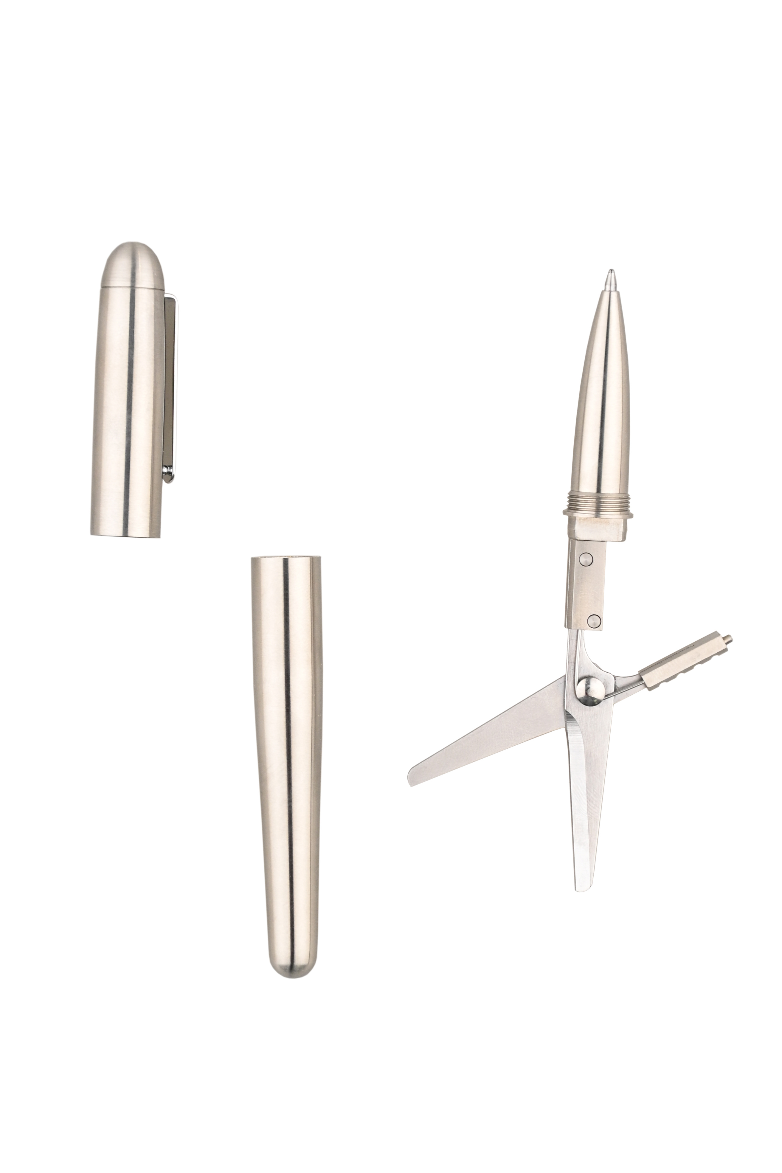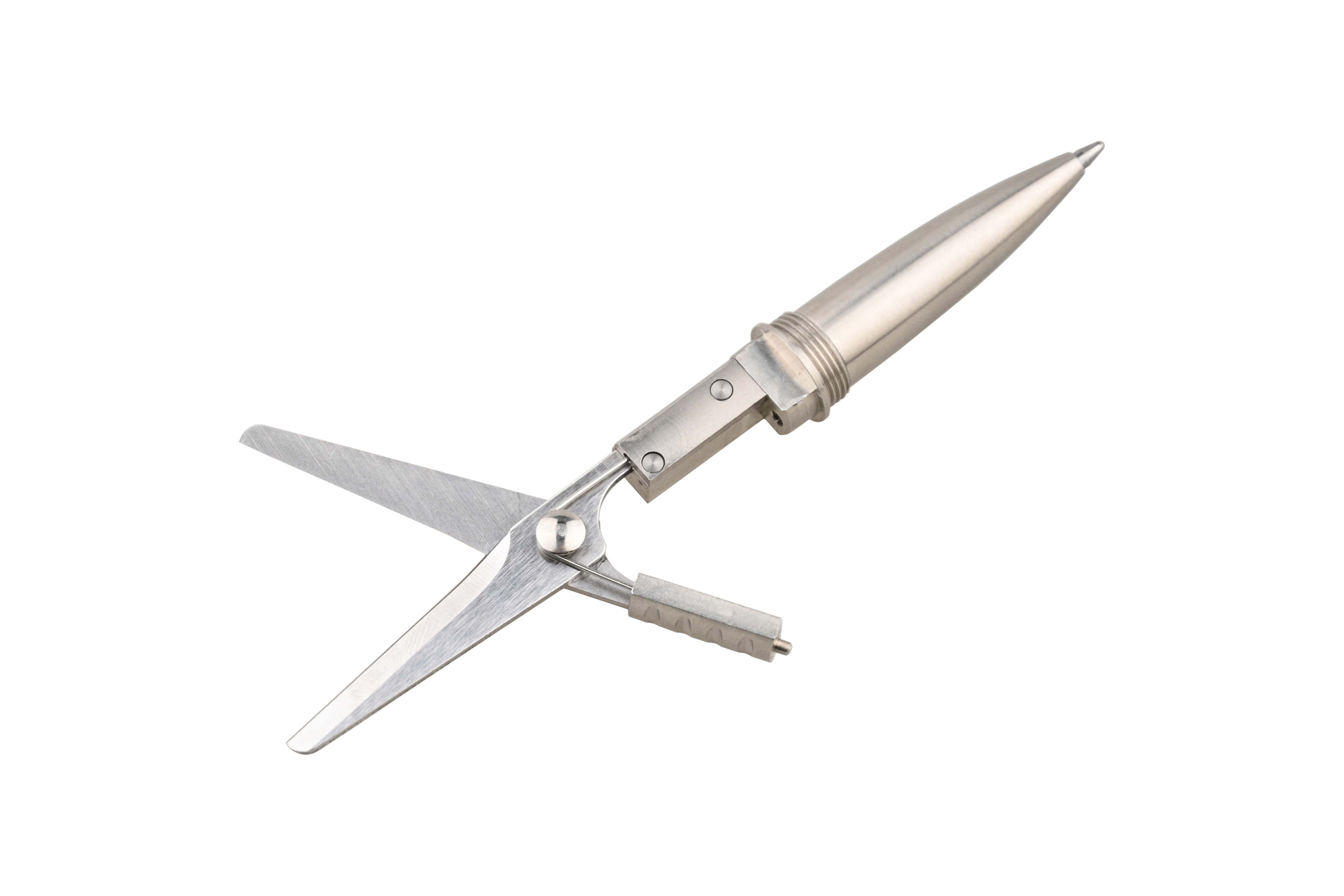 Мультитул Mininch Xcissor Pen серебристый XP-001 – функциональная ручка с колпачком и подпружиненными ножницами в футляре.