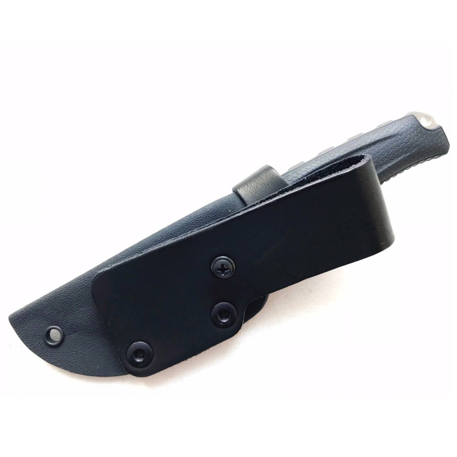 Нож Steep Country Hunter поставляется в комплекте с ножнами из кайдекса. Свойства кайдекса позволяют ему максимально точно повторять форму ножа, благодаря чему ножны удерживают клинок чрезвычайно прочно без каких-либо дополнительных приспособлений, однако ножны снабжены ремешком с клепкой для дополнительной фиксации. Отверстия в ножнах позволяют носить их на шее при помощи шнура, а кожаная петля – подвесить на пояс.