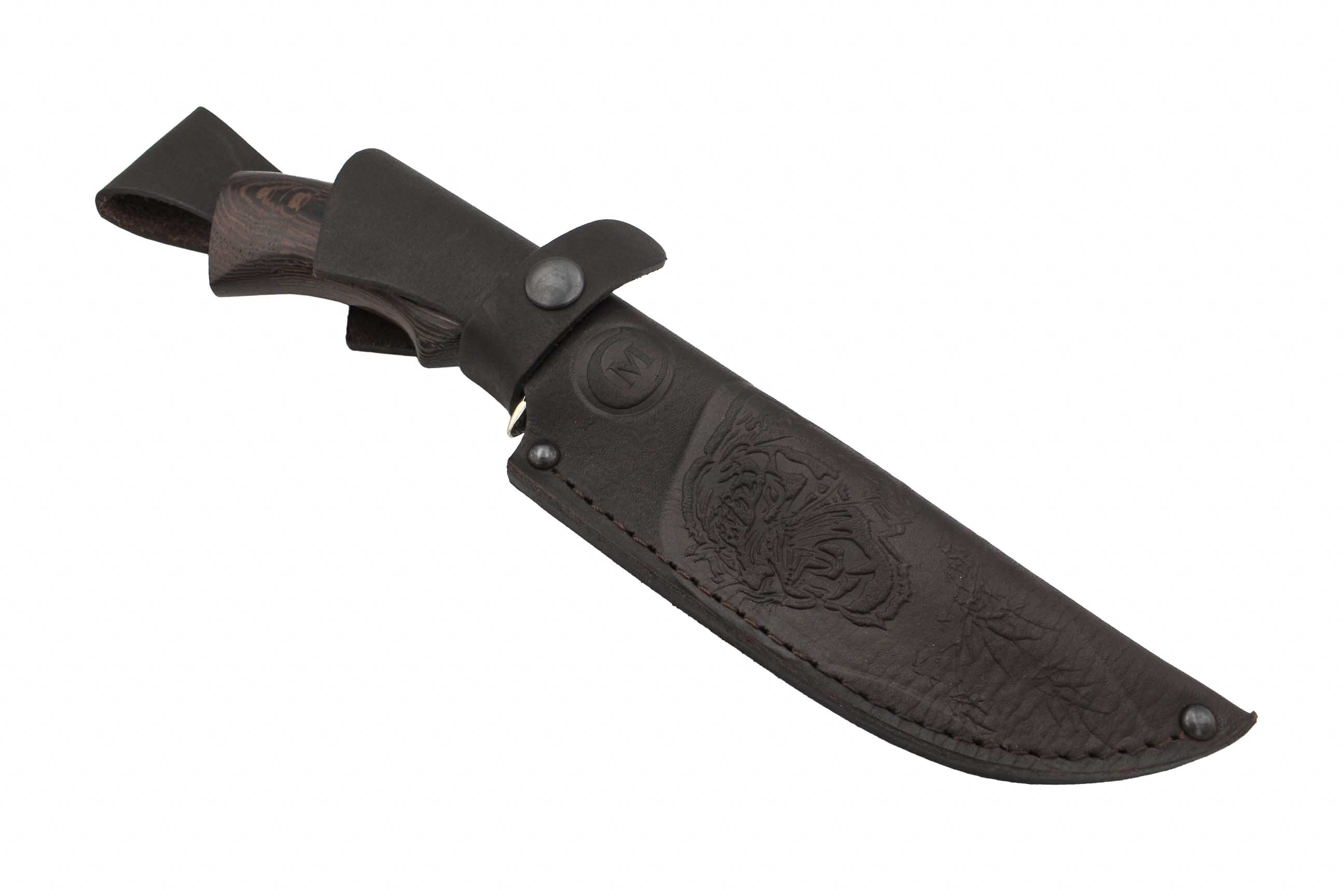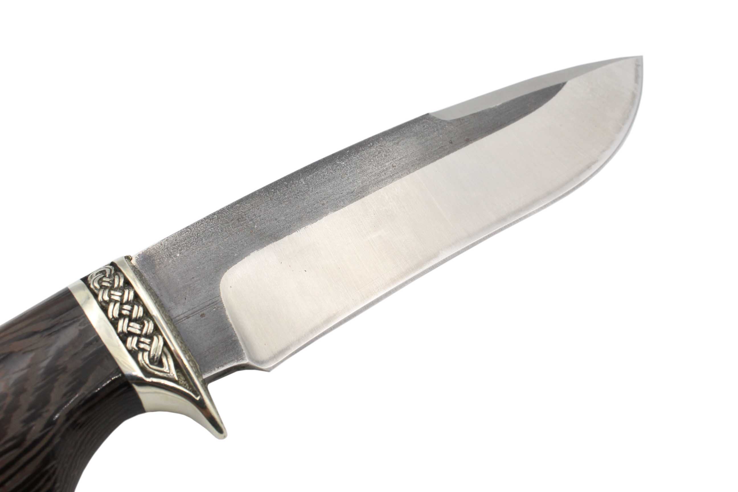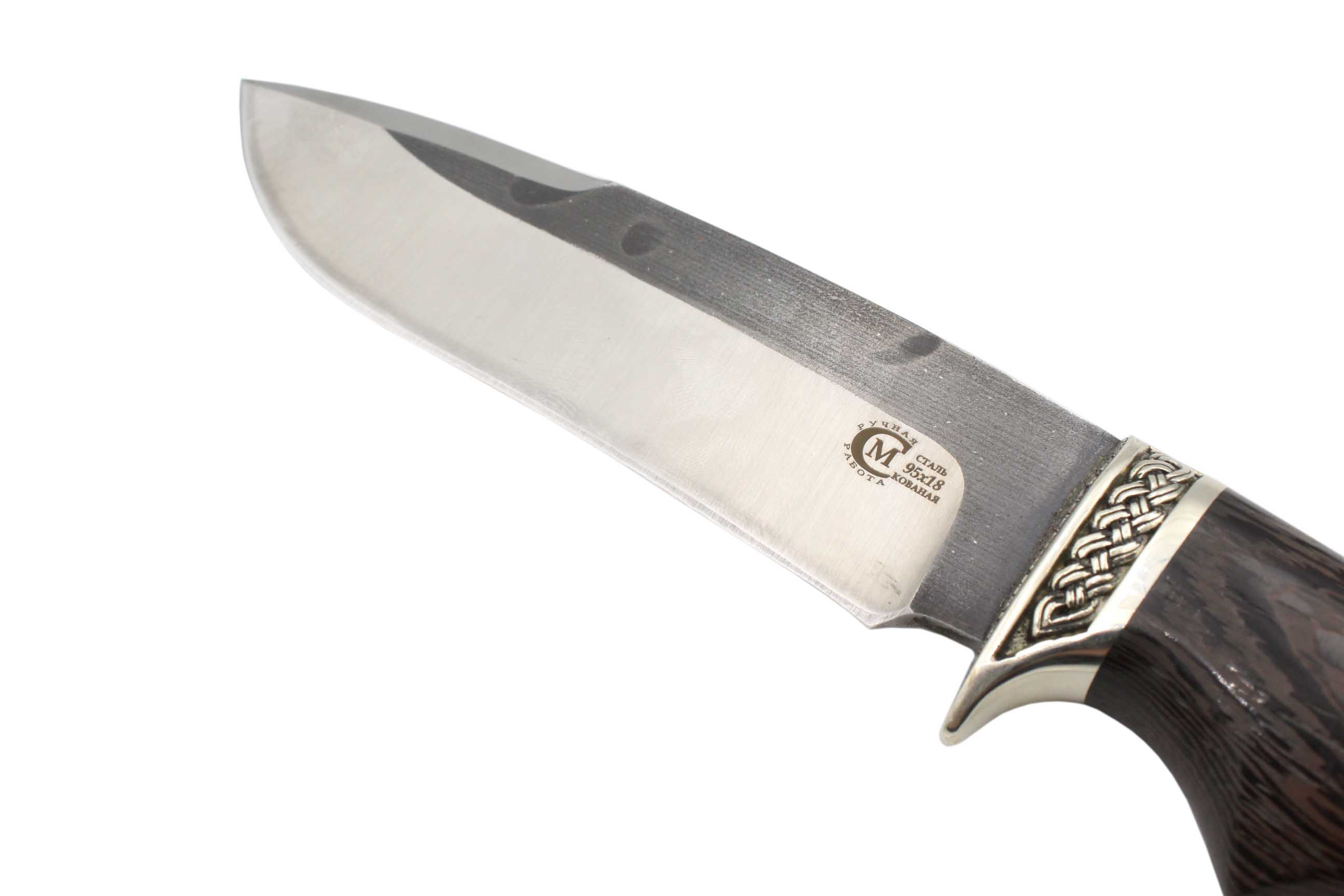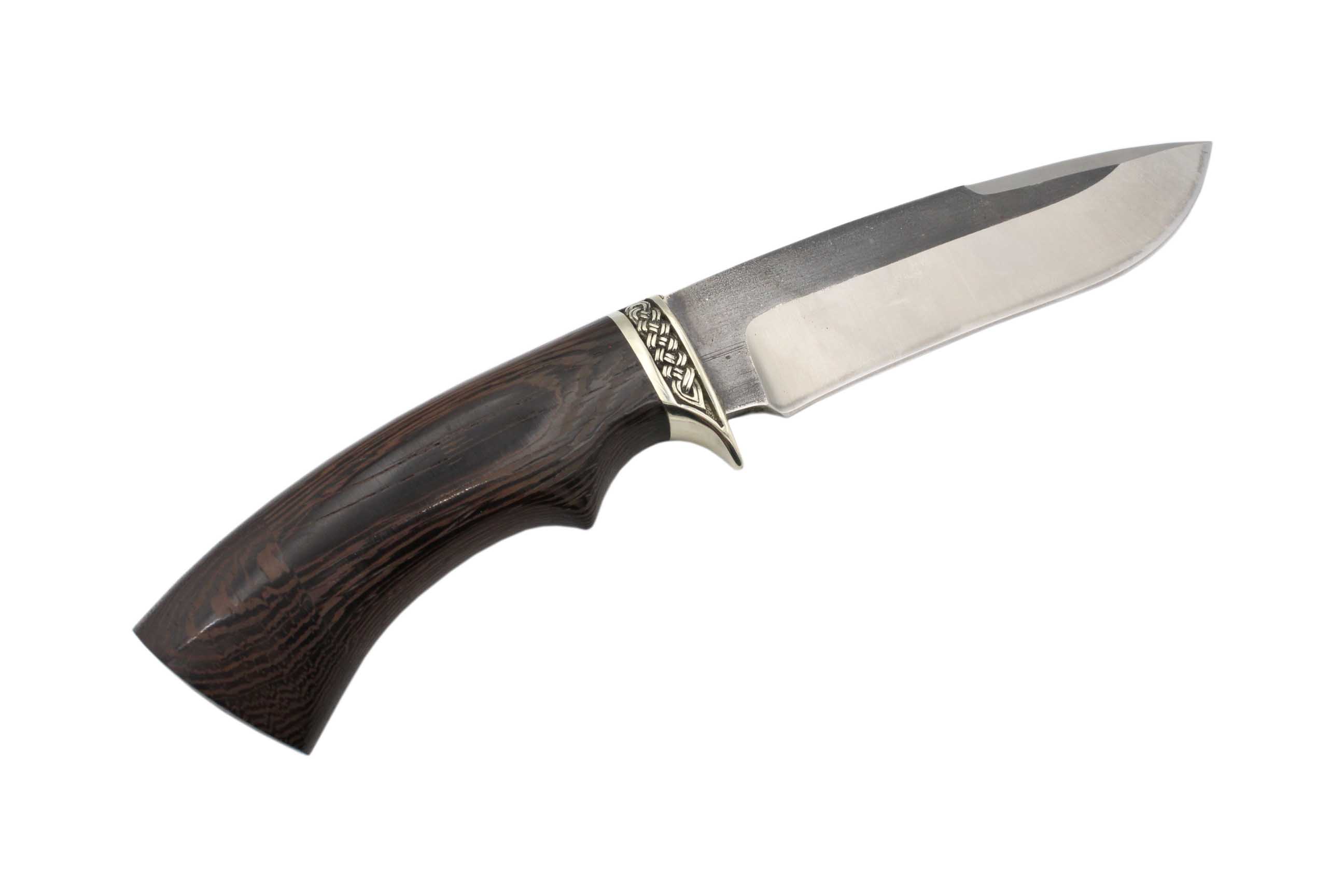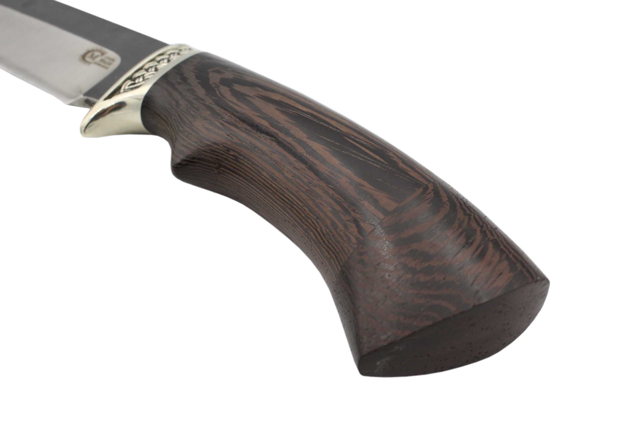 Скругленный, выгнутый обух лезвия и режущей кромки делают его похожим на скандинавские ножи, используемые для большинства повседневных работ. Кроме того, это не позволяет отнести данную модель ножа к категории оружия. Рукоять оформлена венге и оснащена гардой с ограничителем и тыльником из узорного литья.