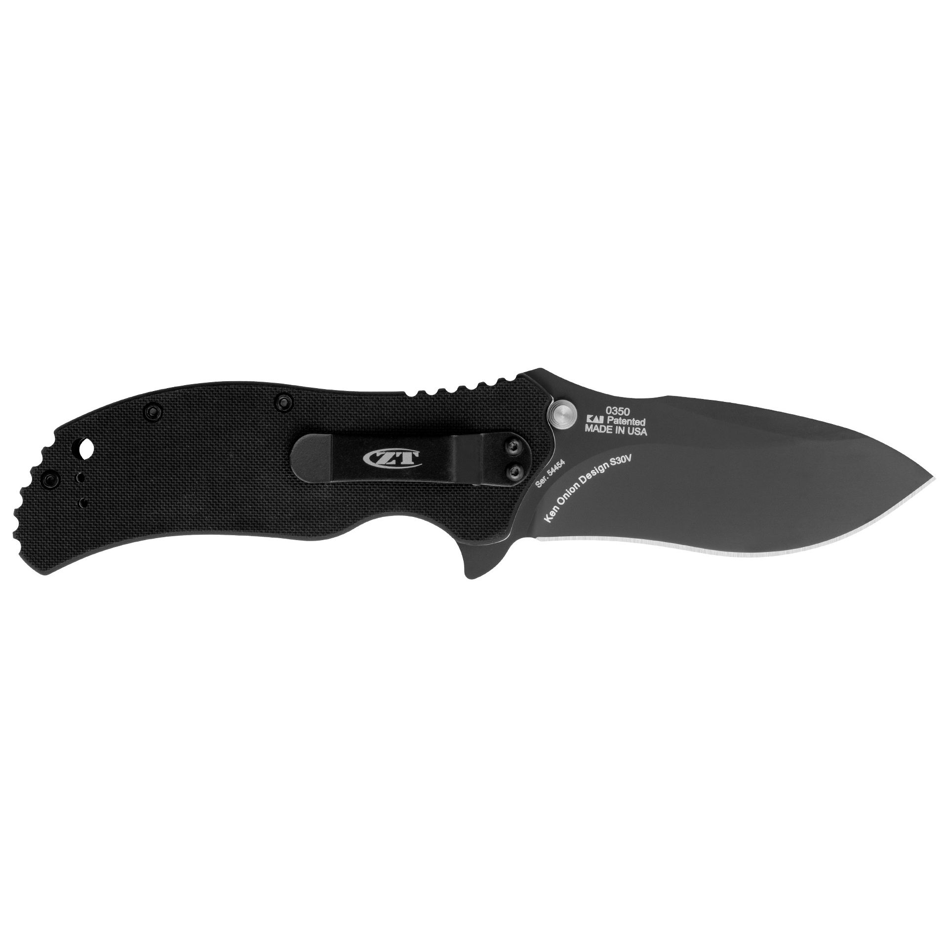 Zero Tolerance 0350 представляет собой гражданскую версию флагманской модели ZT 0300. Этот нож на 10% компактнее своего старшего брата, но при этом сохраняет все ключевые функции, необходимые для повседневного использования. Клинок ножа имеет прямые спуски, занимающие две трети его ширины. На клинке также присутствует фальшлезвие, которое не доходит до самого кончика, что добавляет конструкции дополнительную прочность.