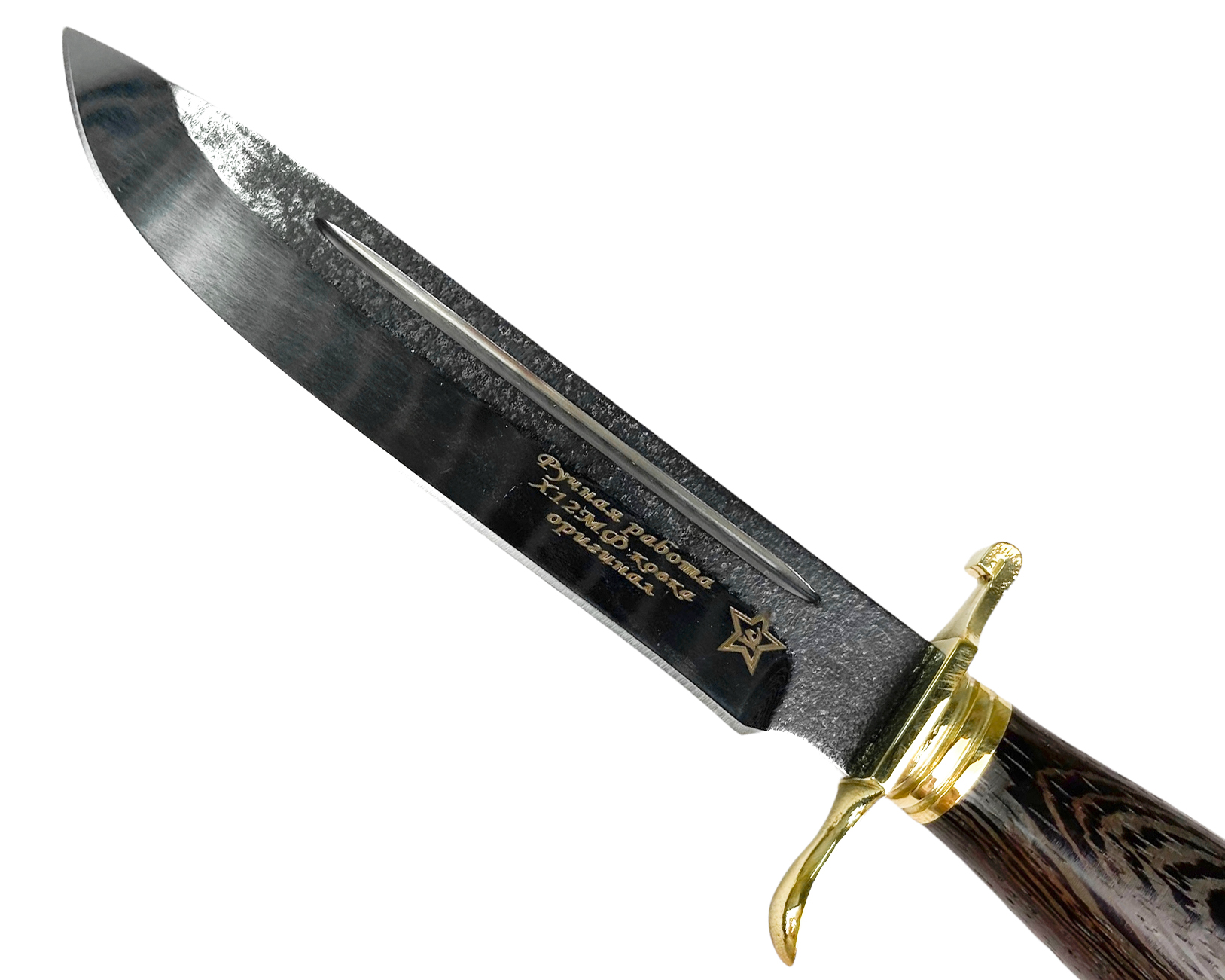 Клинок выкован из высокопрочной штамповой стали Российского производства Х12МФх12мф - это инструментальная легированная сталь, используемая для изготовления клинков ножей, способная длительное время сохранять остроту режущей кромки в любых, даже неблагоприятных, условиях.Подробнее . В комплекте: нож, ножны.