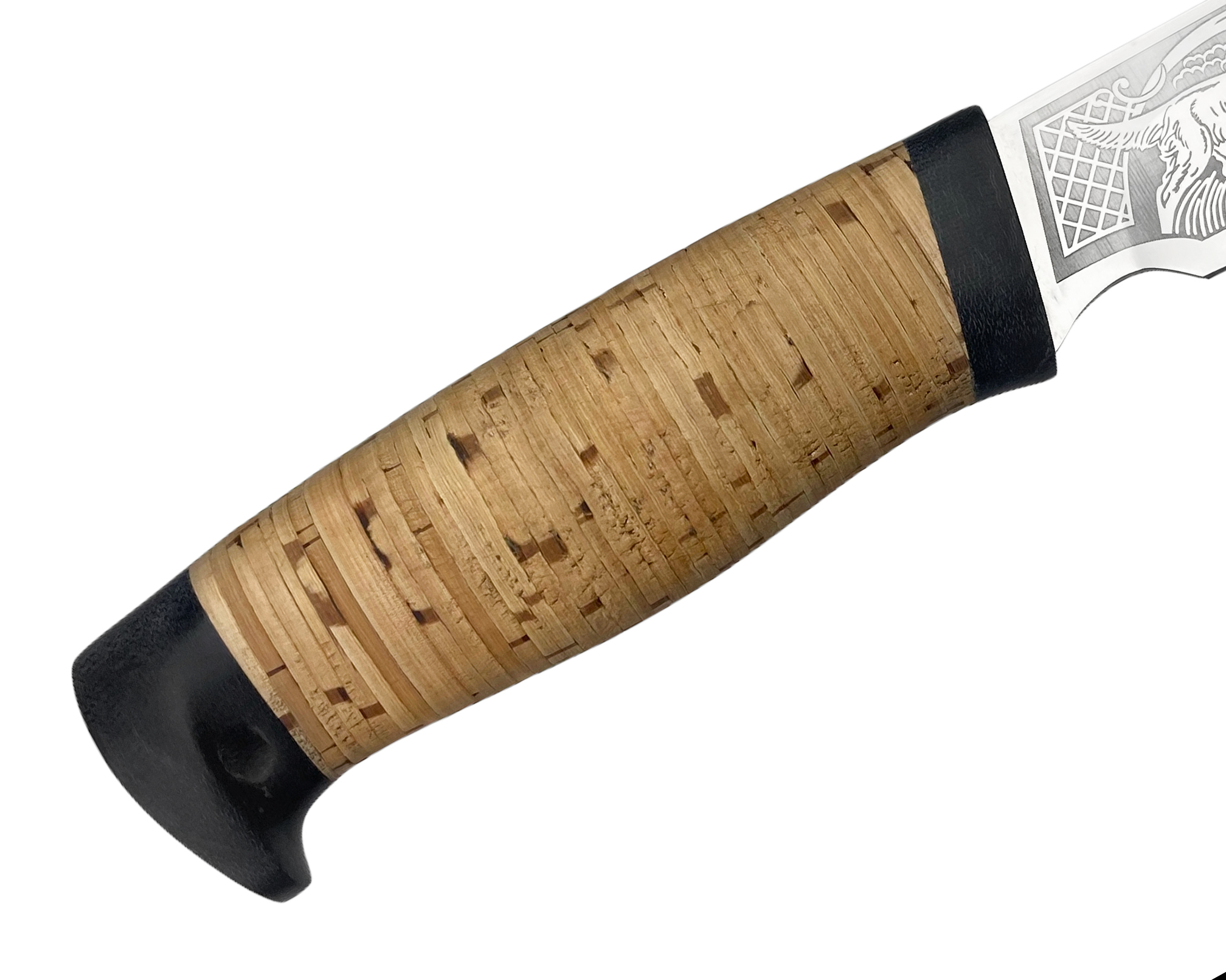 Монтаж хвостовика клинка – сквозной и не разборный. Данный нож отлично подходит для охотников и туристов.