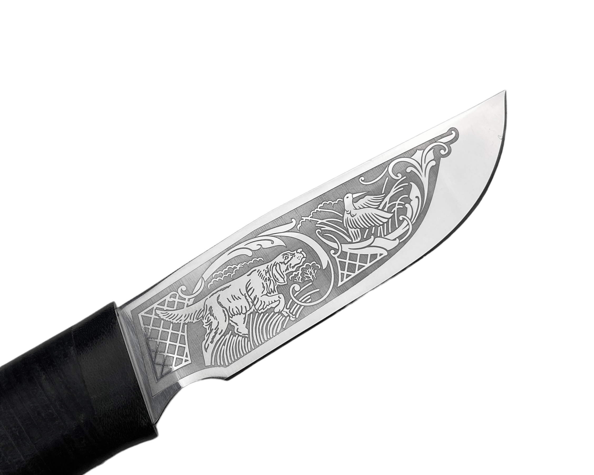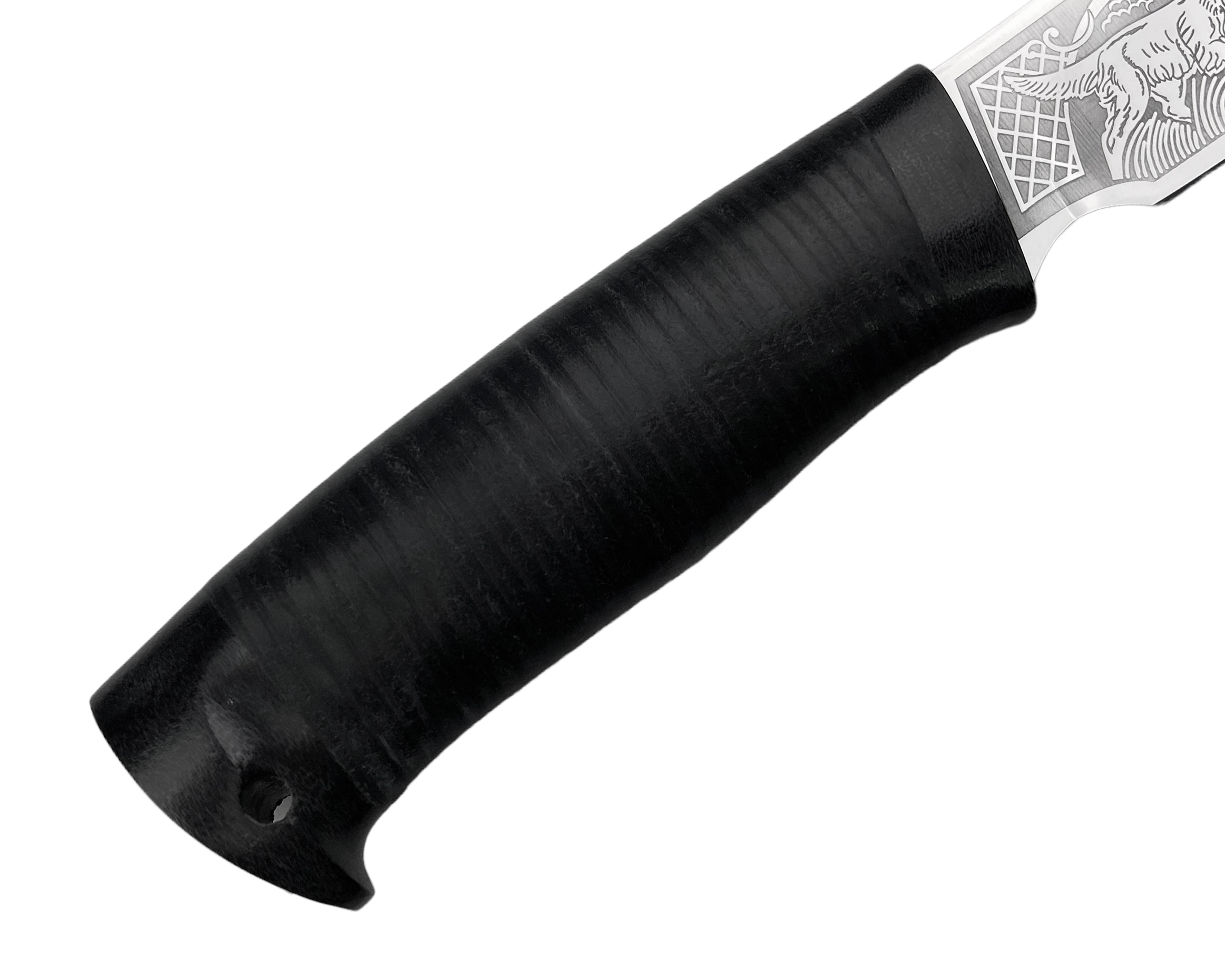 Монтаж хвостовика клинка – сквозной и не разборный. Данный нож отлично подходит для охотников и туристов.