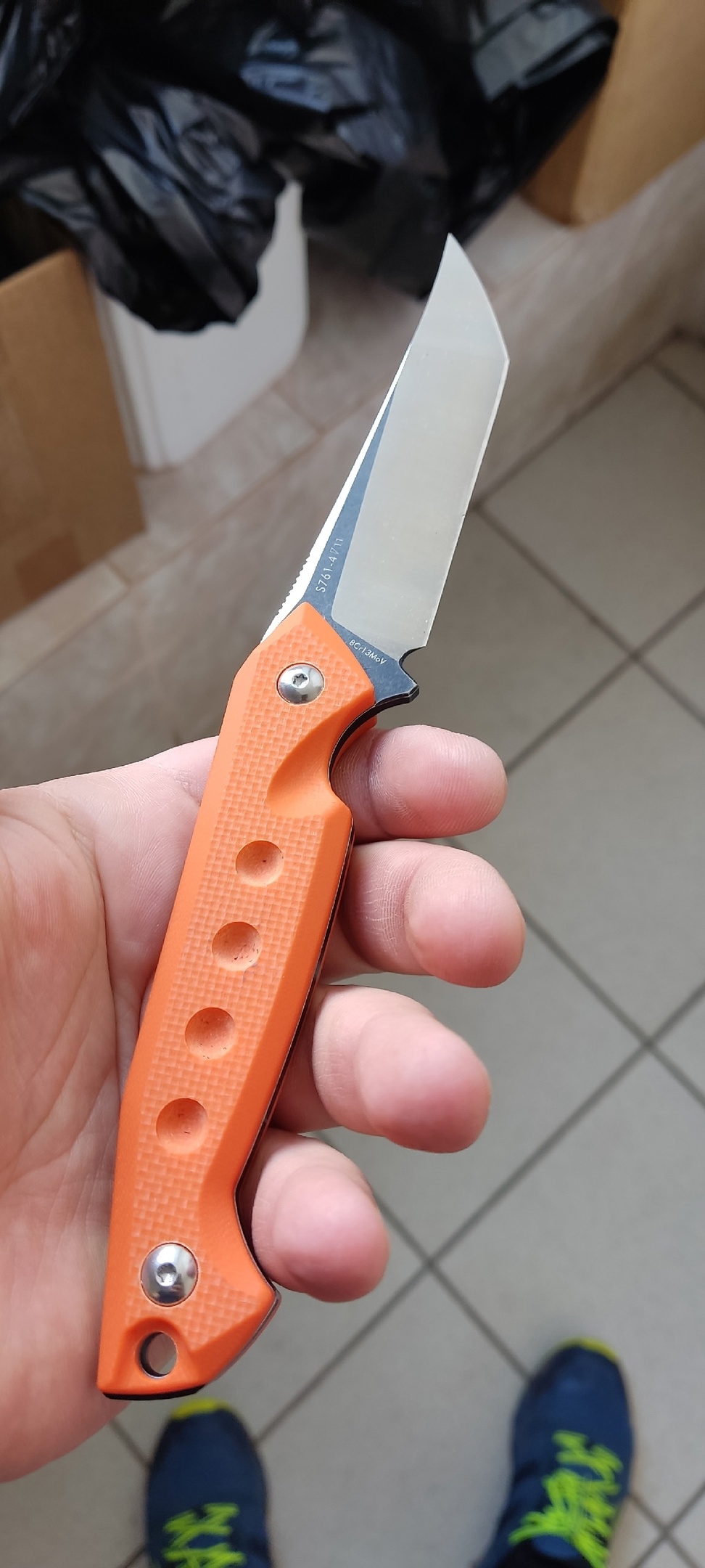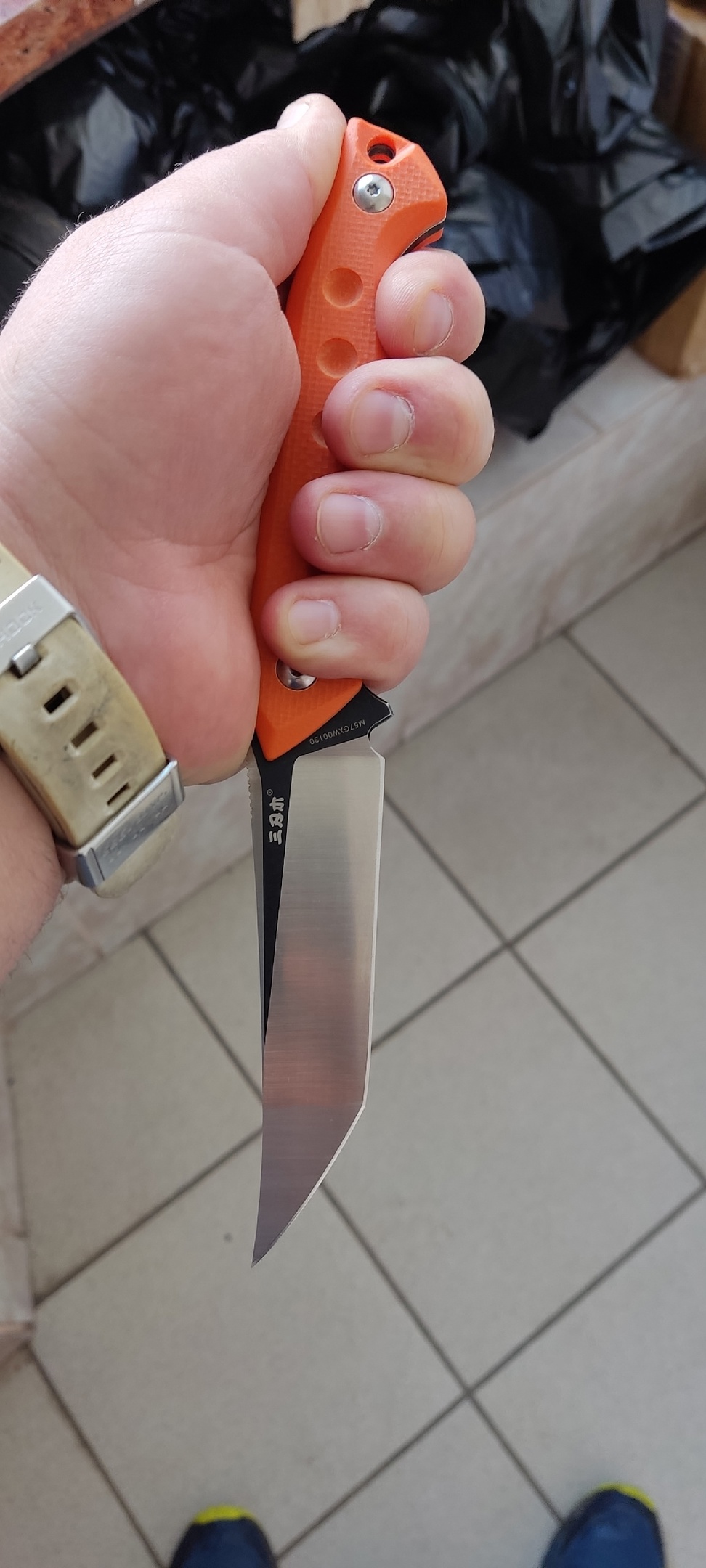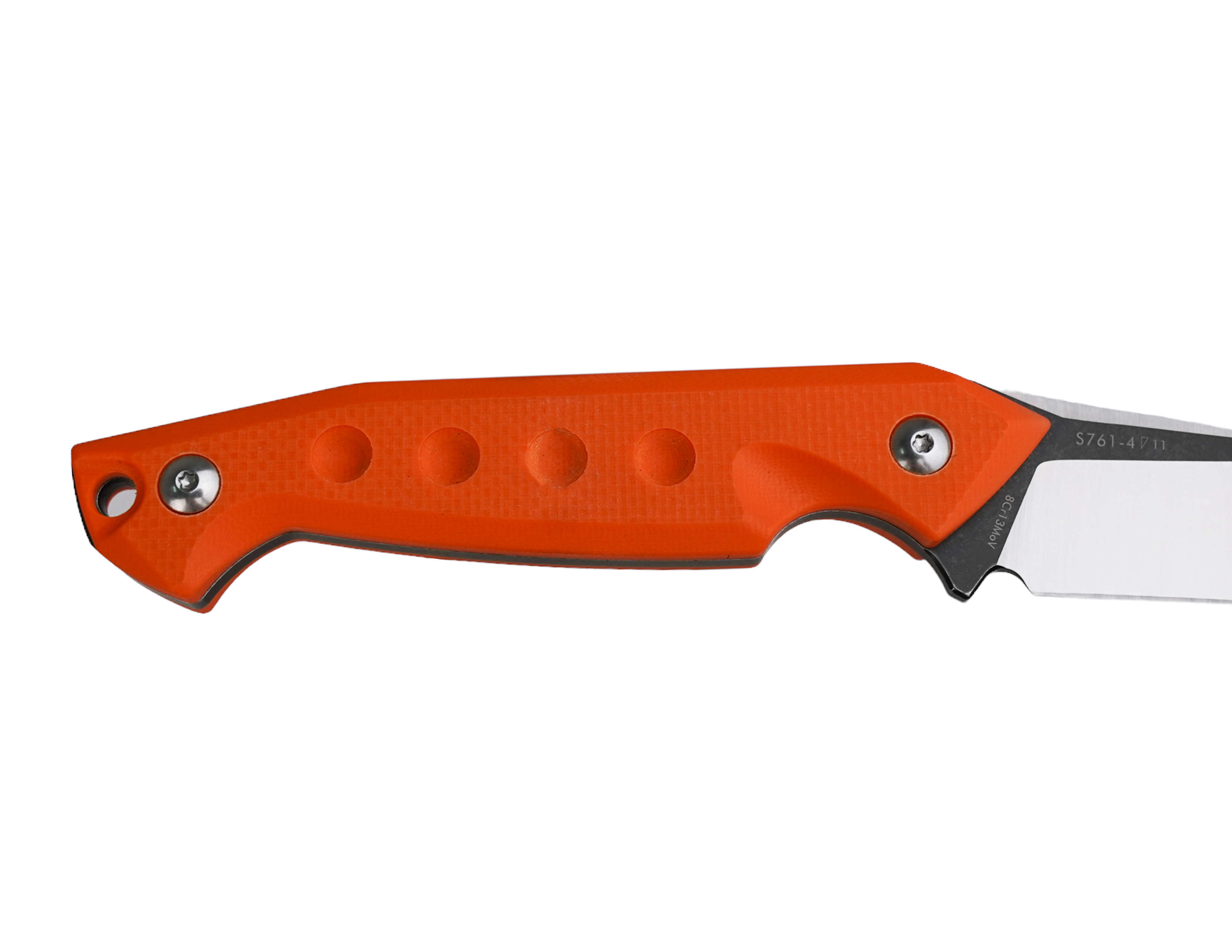 Рукоятка ножа выполнена из материала G10G10 - это материал, основными компонентами которого являются стеклоткань и эпоксидные смолы. Процесс производства материала представляет собой вымачивание стекловолокна в смолах, после чего пропитанное стекловолокно подвергают сжатию. В результате получается материал, который отлично показывает себя при работе в неблагоприятных условиях.Подробнее, который обладает превосходными свойствами прочности и устойчивости к воздействию влаги и химических веществ. Оранжевый цвет рукояти придает ножу яркий и заметный внешний вид.