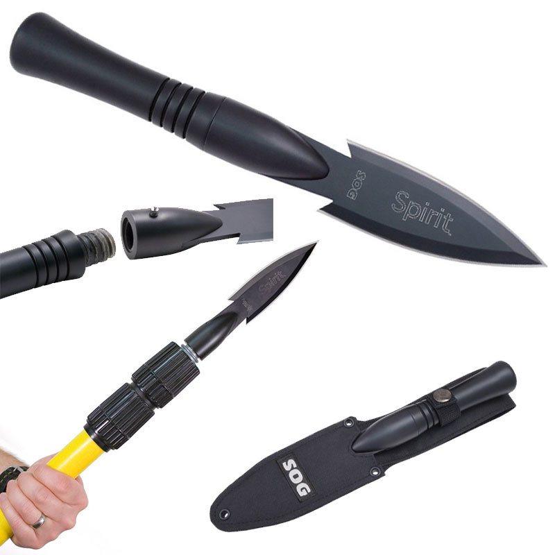 Нож Spirit с черным клинком выглядит как футуристический наконечник копья: изящный, аэродинамический и смертоносный. И это действительно так: отвинтите рукоять и найдите подходящее древко - и у вас под рукой всегда будет копье! Благодаря этой особенности Spirit считается одним из оптимальных орудий для выживания.