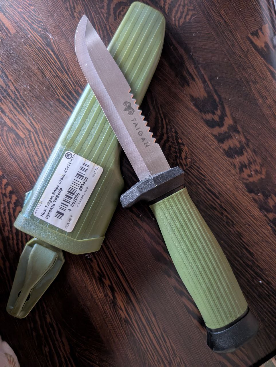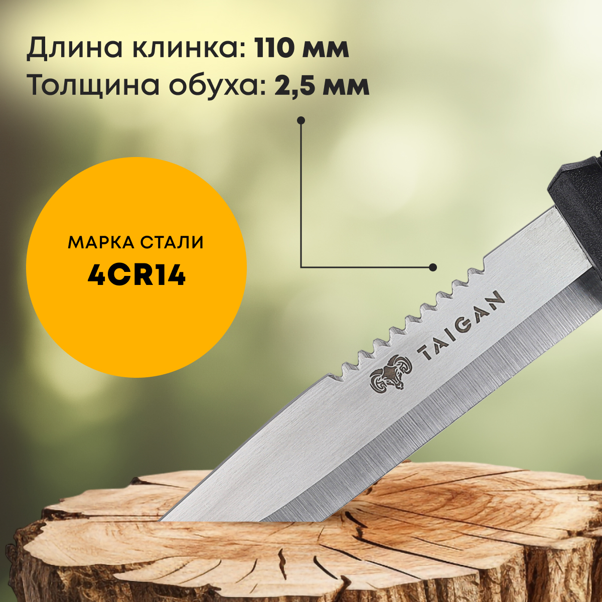Нож для повседневного ношения Taigan Snipe изготовлен из нержавеющей стали 4Cr144Cr14 4Cr14 - это название марки нержавеющей стали. "4Cr14" обозначает ее химический состав и свойства.Подробнее . Это обеспечивает высокую прочность и устойчивость к коррозии, что особенно важно для охотников, рыболовов и туристов, часто находящихся в условиях повышенной влажности.