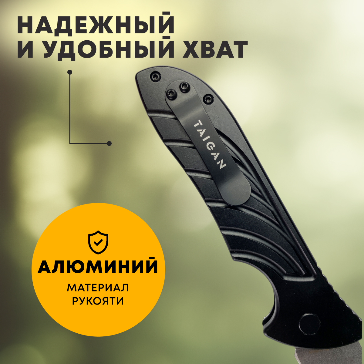 Прочная и легкая алюминиевая рукоятьРукоять изготовлена из алюминия, что делает нож легким, но при этом прочным. Эргономичная форма и рифленые вставки обеспечивают надежный хват, даже если руки мокрые или в перчатках.