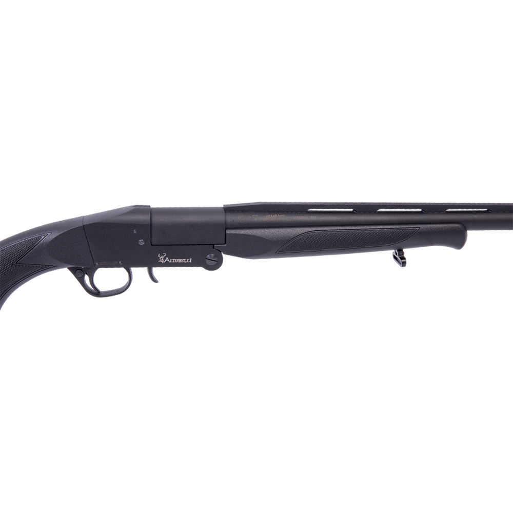 Ствол калибра 20x76 мм позволяет использовать дульные сужения. Прицельные приспособления включают вентилируемую планку и латунную мушку. Приклад и цевье модели Альтобелли Манифест Сингл Баррель Блэк изготовлены из пластика.