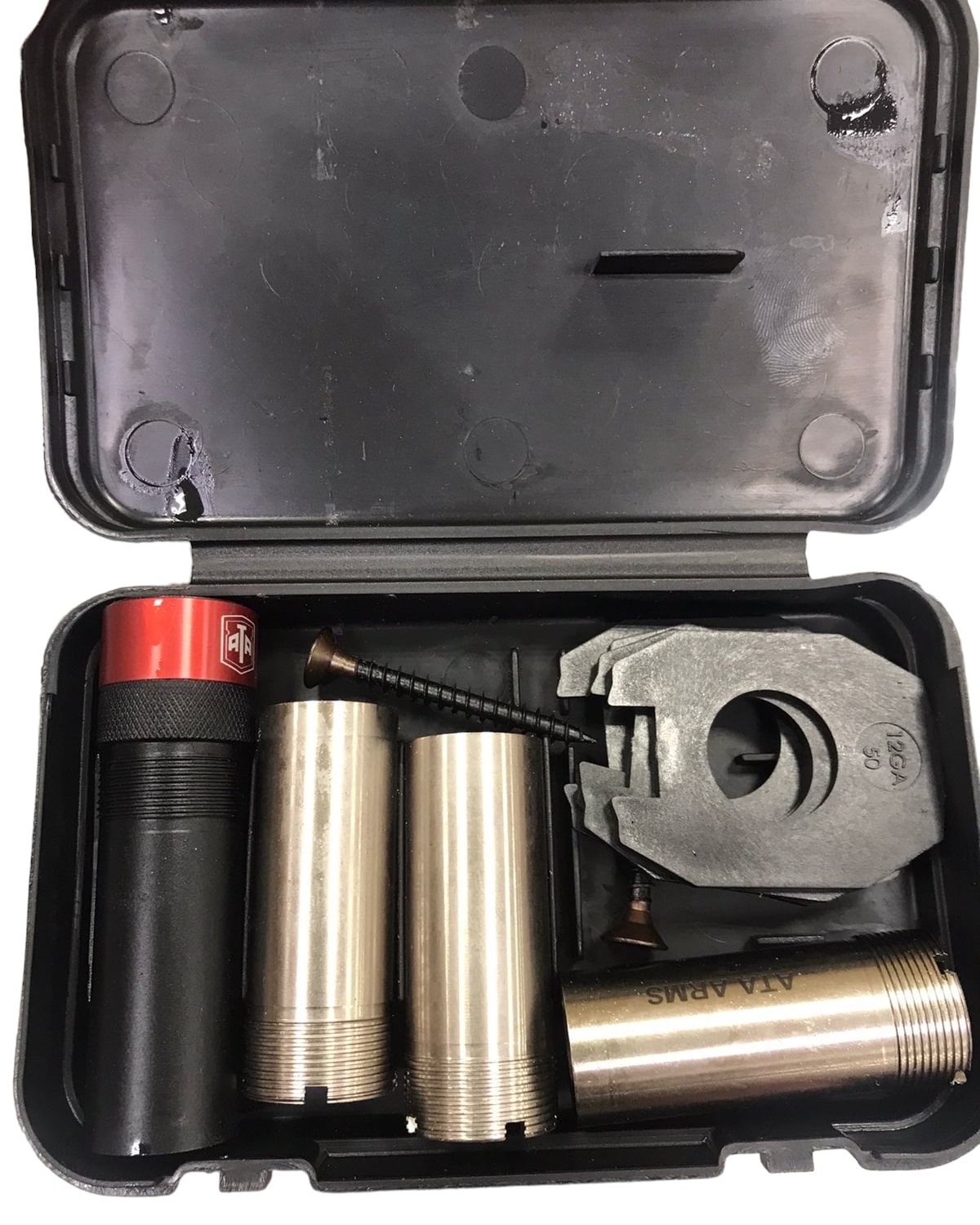 В комплект входит набор из 5 чоков (цилиндр; 0,25; 0,5; 0,75; 1,00 мм) с ключом для регулировки осыпи дроби.