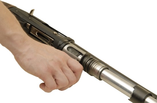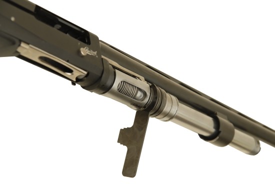 Полуавтомат демонстрирует превосходную эргономичность. Лаконичная форма рукояти с насечками не скользит и отлично лежит в руке. Благодаря резиновому затыльнику новой конструкции действие отдачи заметно снижено.