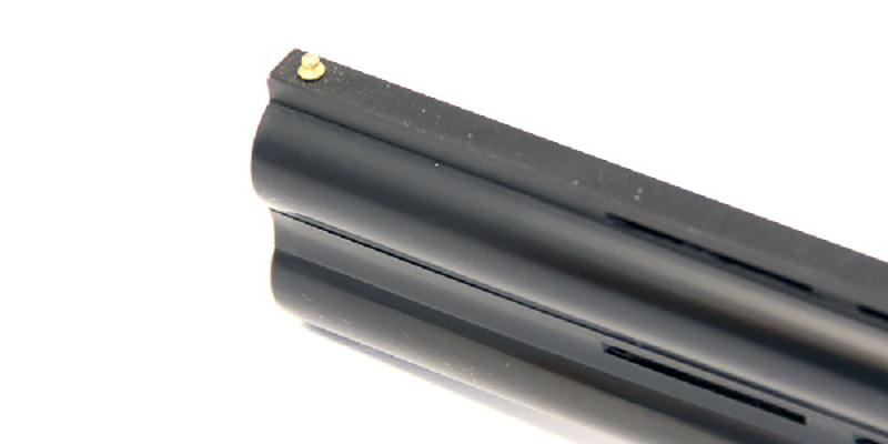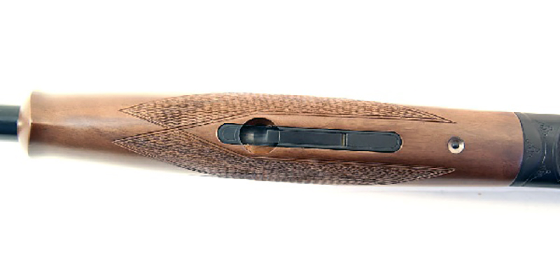 Приклад и цевье изготовлены из ореха и имеют насечки для надежного удержания оружия в руках. Резиновый затыльник на прикладе обеспечивает комфорт при стрельбе и снижает отдачу.