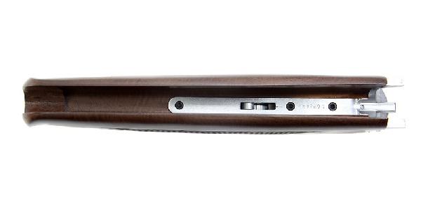 Приклад и цевье изготовлены из ореха и имеют насечки для надежного удержания оружия в руках. Резиновый затыльник на прикладе обеспечивает комфорт при стрельбе и снижает отдачу.