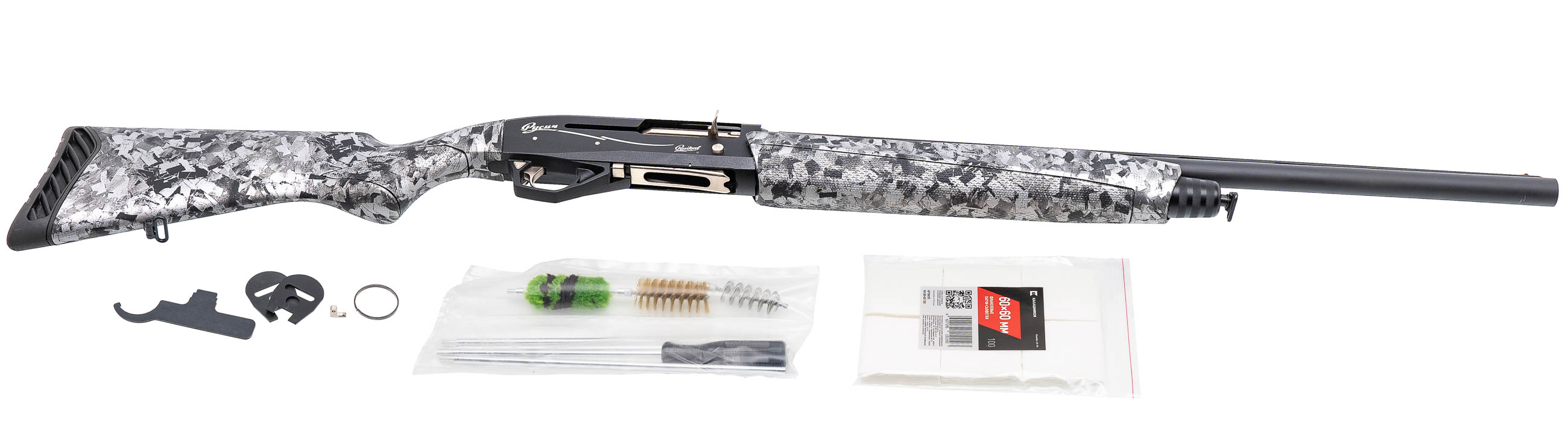 Ружье оснащено подствольным трубчатым магазином, емкость которого 4 патрона варьируется в зависимости от конкретной партии поставки (рекомендуется уточнять при оформлении заказа). Приклад и цевье выполнены из износостойкого полимера в камуфляжном принте «Карбон» с тактильно приятным покрытием Soft-TouchSoft-Touch - специальное эластичное резиноподобное матовое лакокрасочное покрытие. Обладает хорошей адгезией с металлами, деревом, тканями и большинством полимерных материалов.Подробнее . Для удобства переноски предусмотрены антабки под ремень, а за безопасность отвечает кнопочный предохранитель.