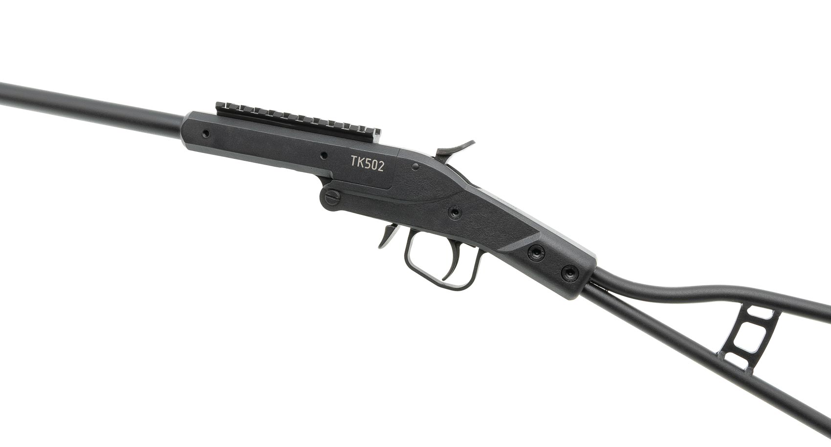 Легкое ружье модели TK502, с переломным типом заряжания, от российского производителя ТехКрим, в основном предназначено для охоты. В предлагаемом исполнении поверхности металлических деталей ружья имеют оксидированное покрытие, повышающее стойкость к коррозии.