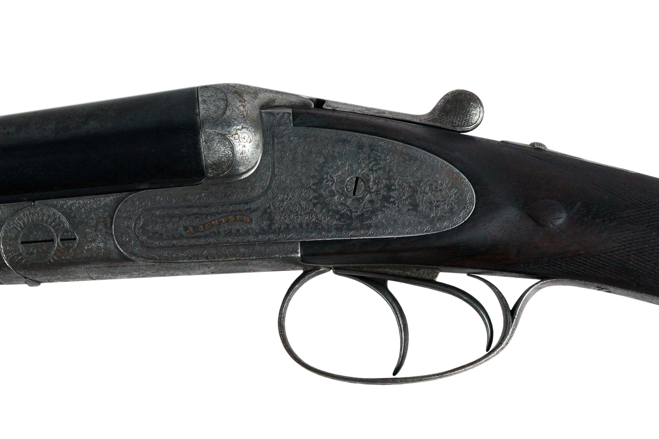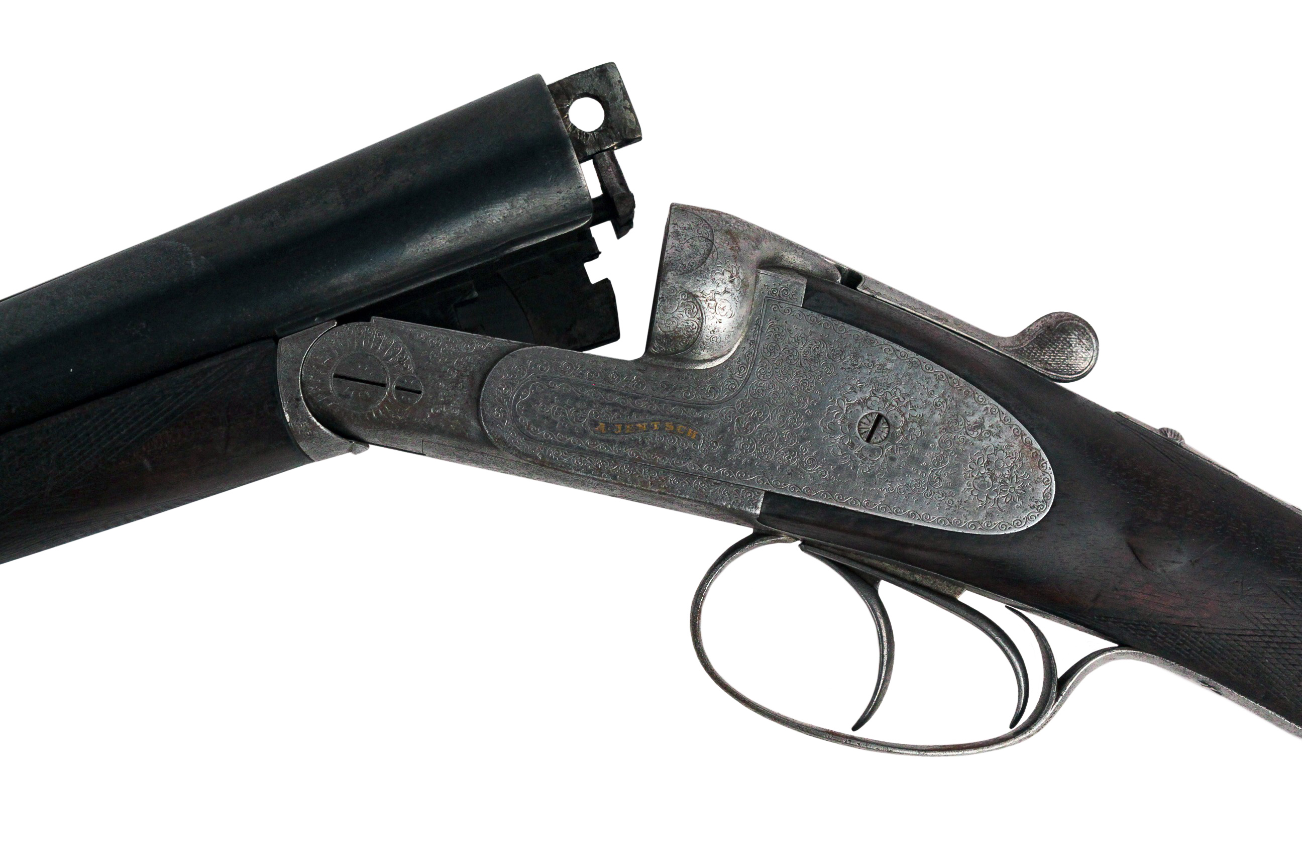 A.Jentsch Odessa - это двуствольное, бескурковое ружье. Стволы из крупповской стали марки «три кольца», 12 калибра, с сильными чоками (17,6 мм). Клейма на колодке сделаны в Германии.