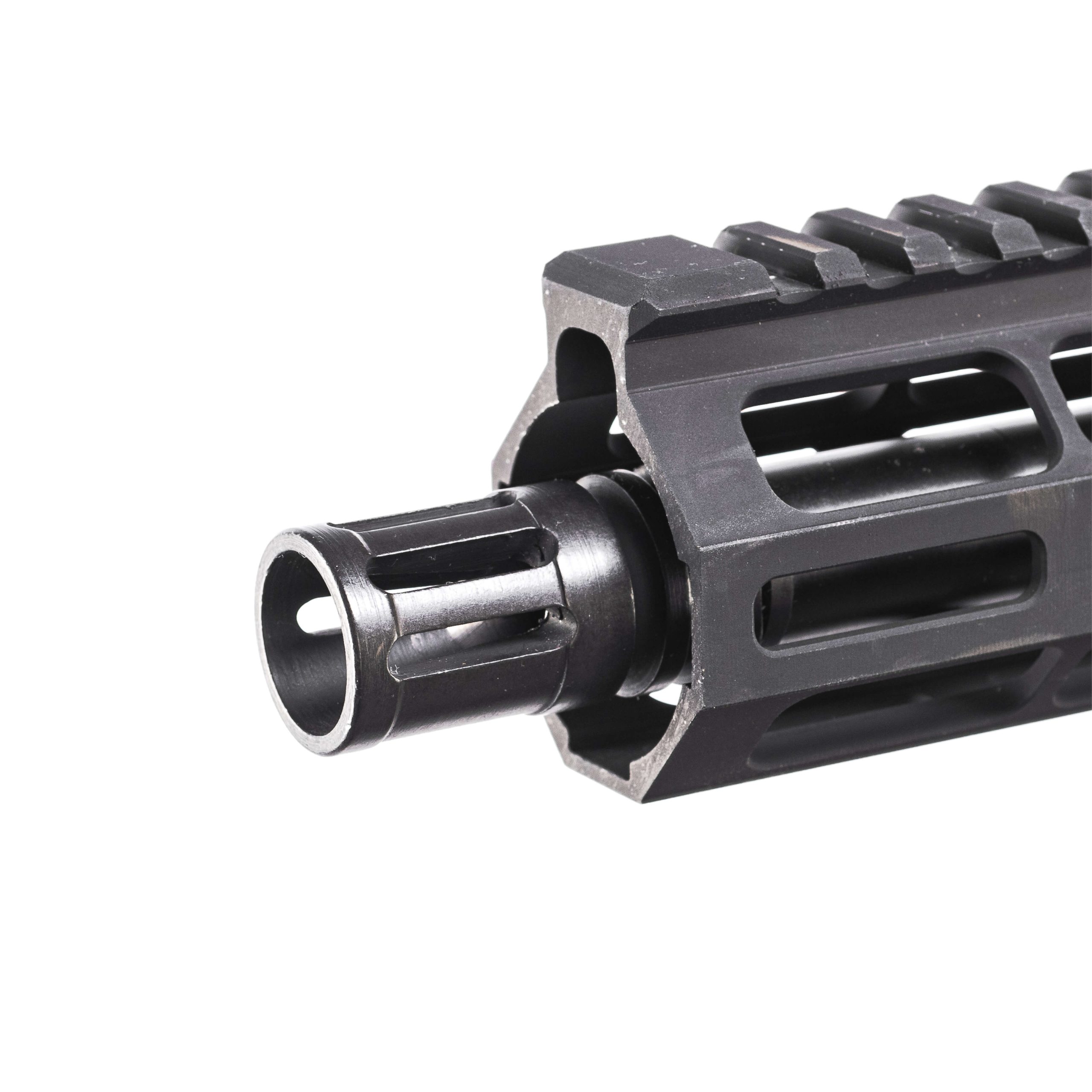 Ствол изготовлен методом холодной ковки с последующей оксикарбонитрацией канала ствола. На дульном срезе находится резьба 1/2х28". На стволе установлен дульный тормоз A2 Flash Hider. Щелевой компенсатор предназначен для удобного обращения с оружием и минимизации воздействия на стрелка. Пять окон расположены сверху, а снизу компенсатор закрыт и не имеет окон для уменьшения подброса ствола во время интенсивной стрельбы. Он изготовлен из высококачественной стали и проходит термическую обработку, чтобы антипригарное покрытие защищало от коррозии и воздействия остатков пороха.