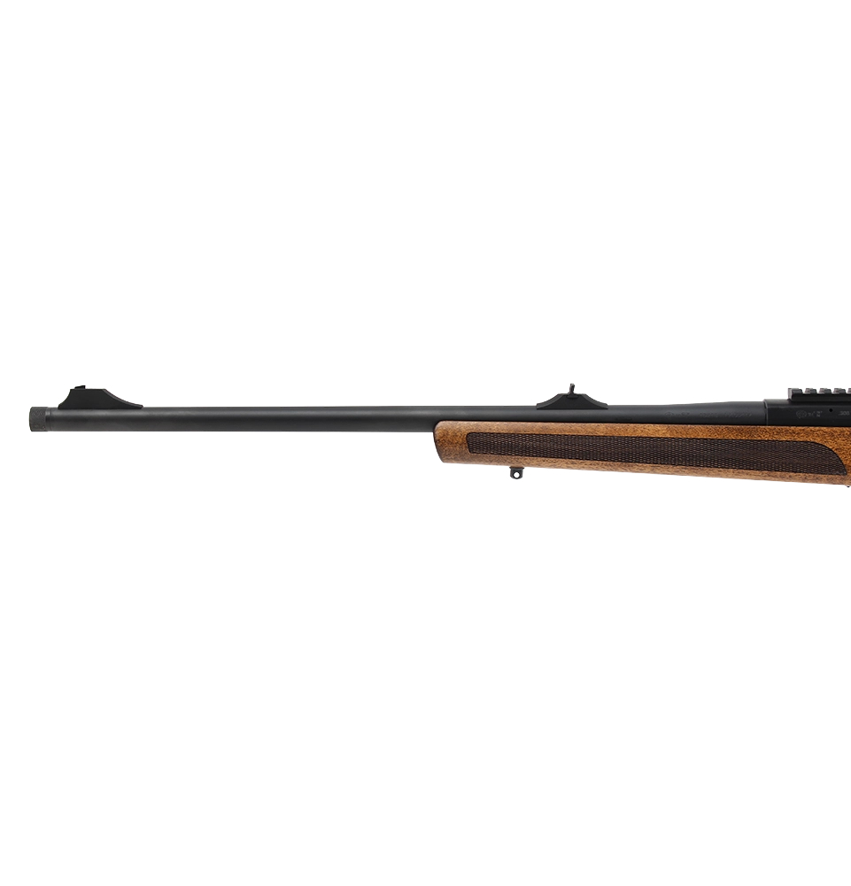 Ствол карабина свободно вывешен, изготовлен из хромомолибденовой стали с шагом нарезки 11 дюймов. Ствольная коробка стальная и выполнена из цельной заготовки. Есть возможность регулировки усилия спуска в диапазоне от 0,8 до 1,6 кг. Штатные прицельные приспособления представлены в виде целика и мушки, а также есть планка PicatinnyPicatinny - кронштейн рельсового типа, применяемый на разных типах стрелкового оружия для обеспечения универсальности крепления прицелов.Подробнее (без наклона) для установки оптического или коллиматорного прицела.