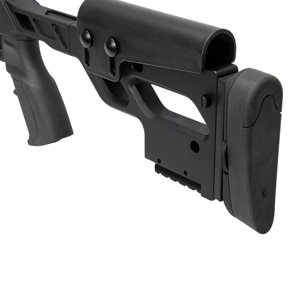 Цевье и приклад карабина выполнены из алюминиевого сплава с анодированным покрытием черного цвета; приклад оснащен регулируемыми подщечником м затыльником; имеется возможность крепления QD-антабок. Пистолетная рукоять пластиковая. Безопасность обращения с оружием обеспечивает трехпозиционный предохранитель.