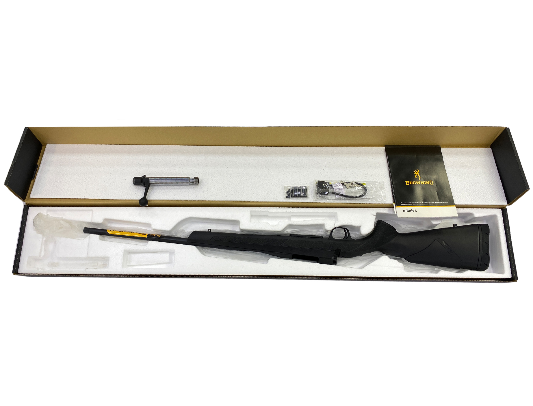 Охотничий карабин A-Bolt 3 - модель калибра .30-06 Sprg, с продольно-скользящим затвором, от известной оружейной компании Browning. Предлагаемое исполнение не оборудовано штатными прицельными приспособлениями, но имеется возможность установки кронштейнов или базы для крепления оптического или коллиматорного прицела, для чего предусмотрены резьбовые отверстия в ствольной коробке.