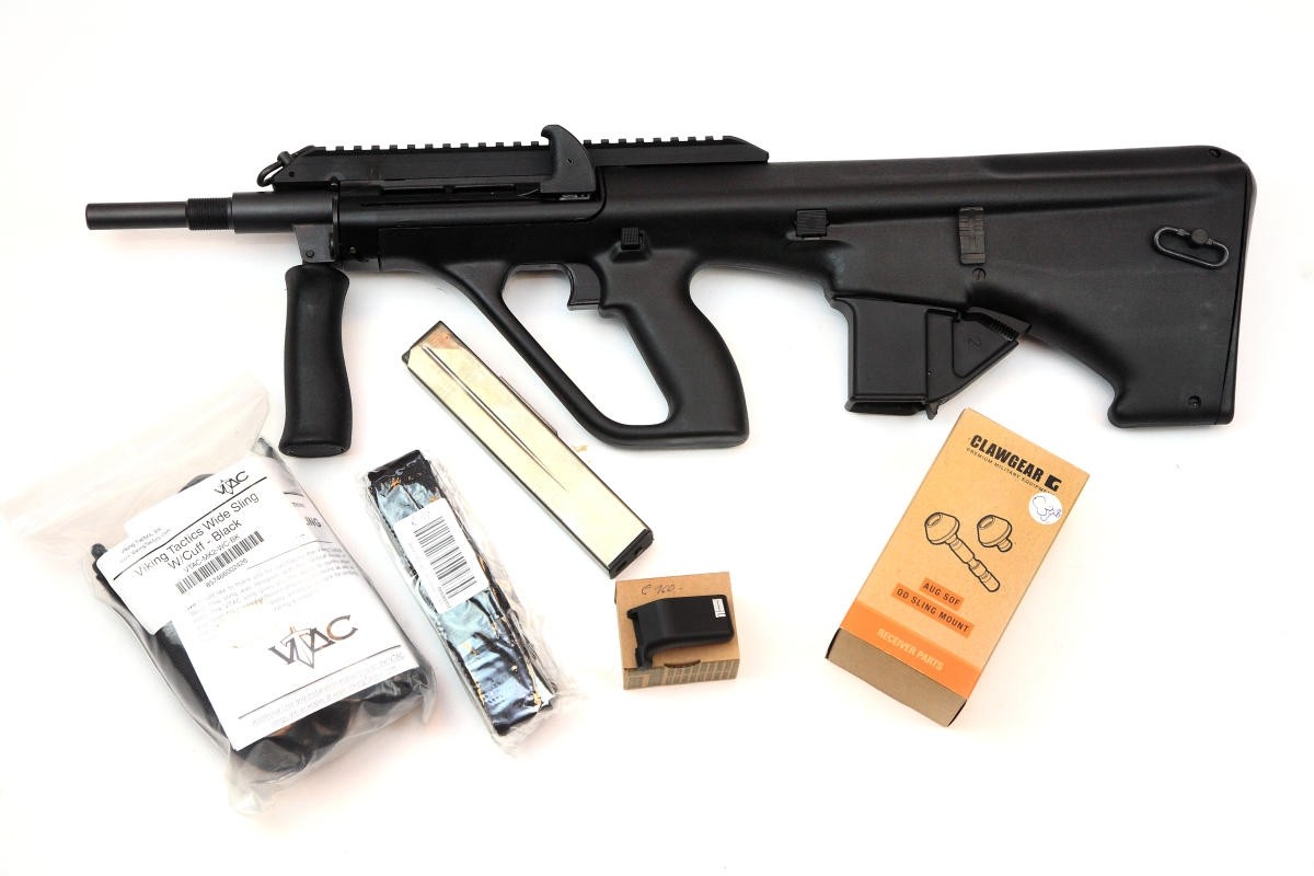 Самозарядный карабин Steyr AUG A3 гражданская версия штурмовой винтовки Steyr AUG в калибре 9х19 мм. Сконструирован для различных видов охот, применяется для тактической стрельбы.
