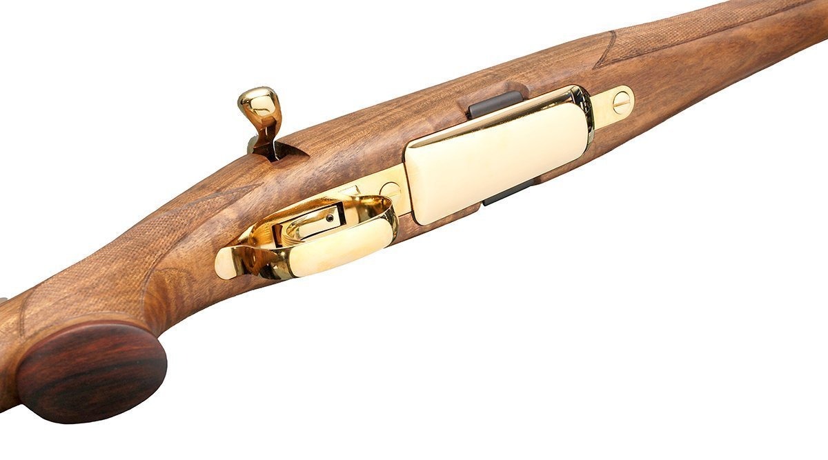 Ложа выполнена из премиального ореха с безупречной обработкой и лакировкой с вставками из премиальной кожи, гармонично дополняет металлические позолоченные элементы. Это не только эстетическое решение, но и фактор, продлевающий срок службы оружия.