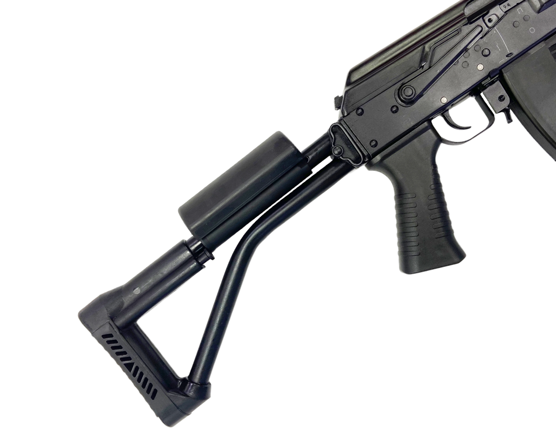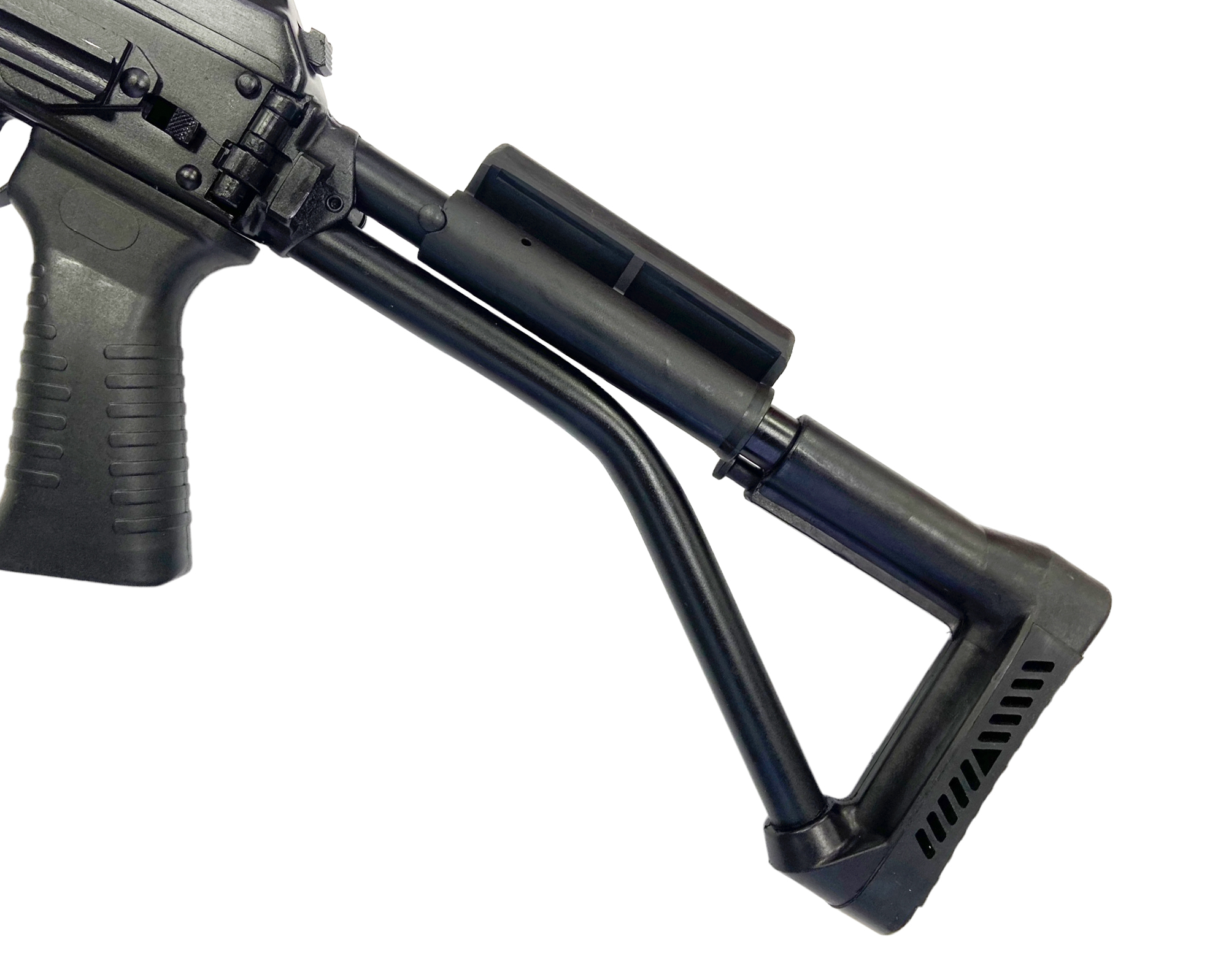 У карабина рамочный складывающийся приклад, облегчающий его транспортировку.
