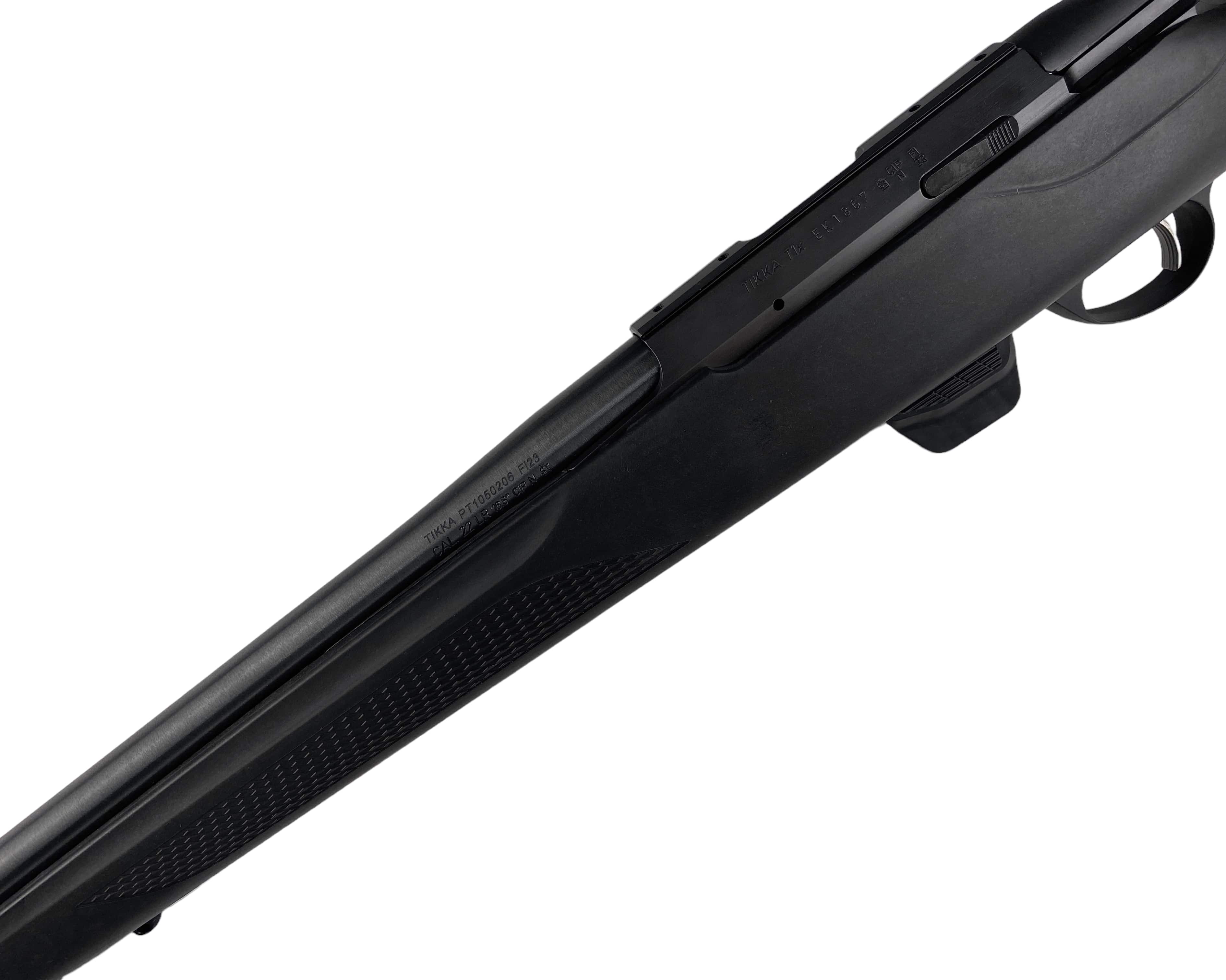 Ложа винтовки выполнена из прочного чёрного пластика с насечкой на местах хвата, что обеспечивает надёжное удержание оружия в руках. Ствол изготовлен методом холодной ковки, а на дульном срезе нарезана резьба для установки ДТК (дульного тормоза или компенсатора). Карабин оборудован продольно-скользящим поворотным затвором, изготовленным из нержавеющей стали. Ударно-спусковой механизм регулируемый, идентичный тому, который используется в более дорогой модели Tikka T3x. Усилие спуска можно регулировать от 1 до 2 кг.
