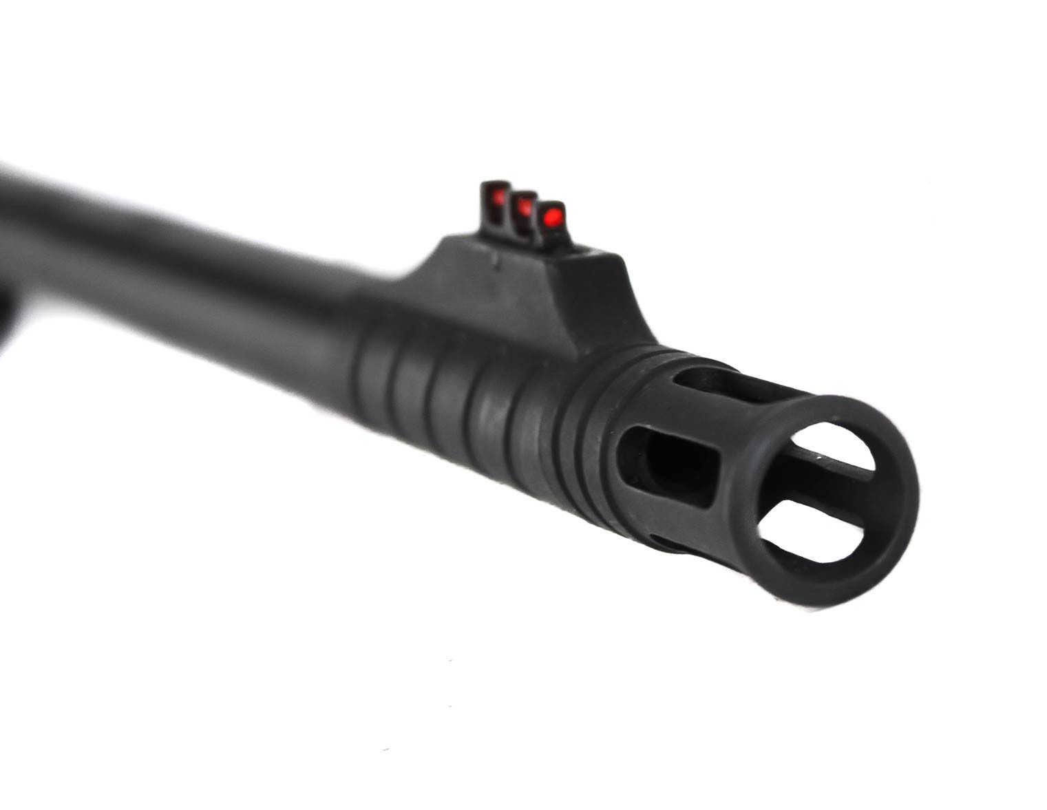 Карабин Hatsan Escort оснащен стальным хромированным стволом, на ствол установлен пламегаситель;