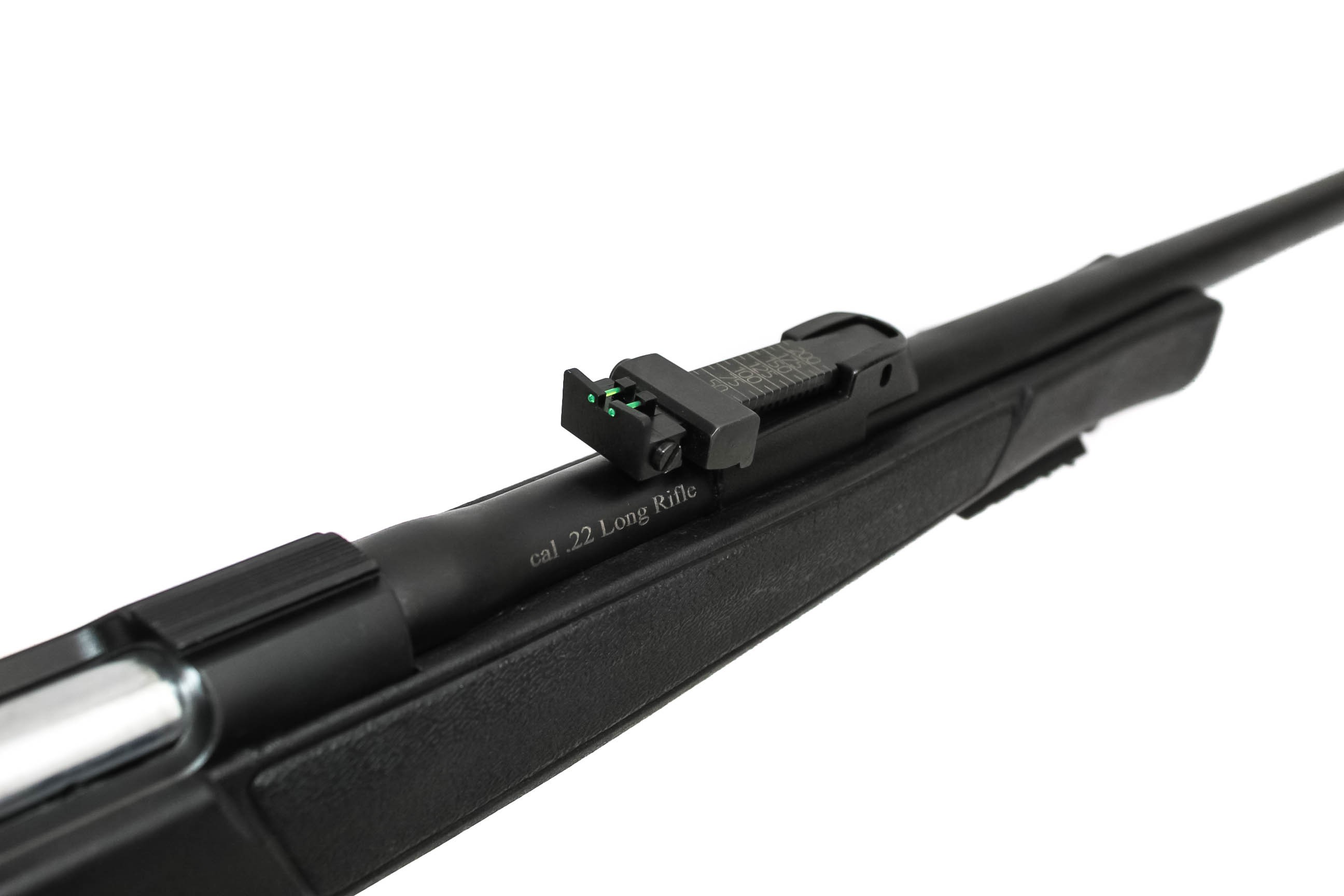 Открытые прицельные приспособления карабина Hatsan Escort 22LR представлены мушкой и прицельной планкой, для установки оптического прицела карабин снабжен планкой Ласточкин хвостЛасточкин хвост - крепление для прицельных оптических устройств на оружие.Подробнее ;