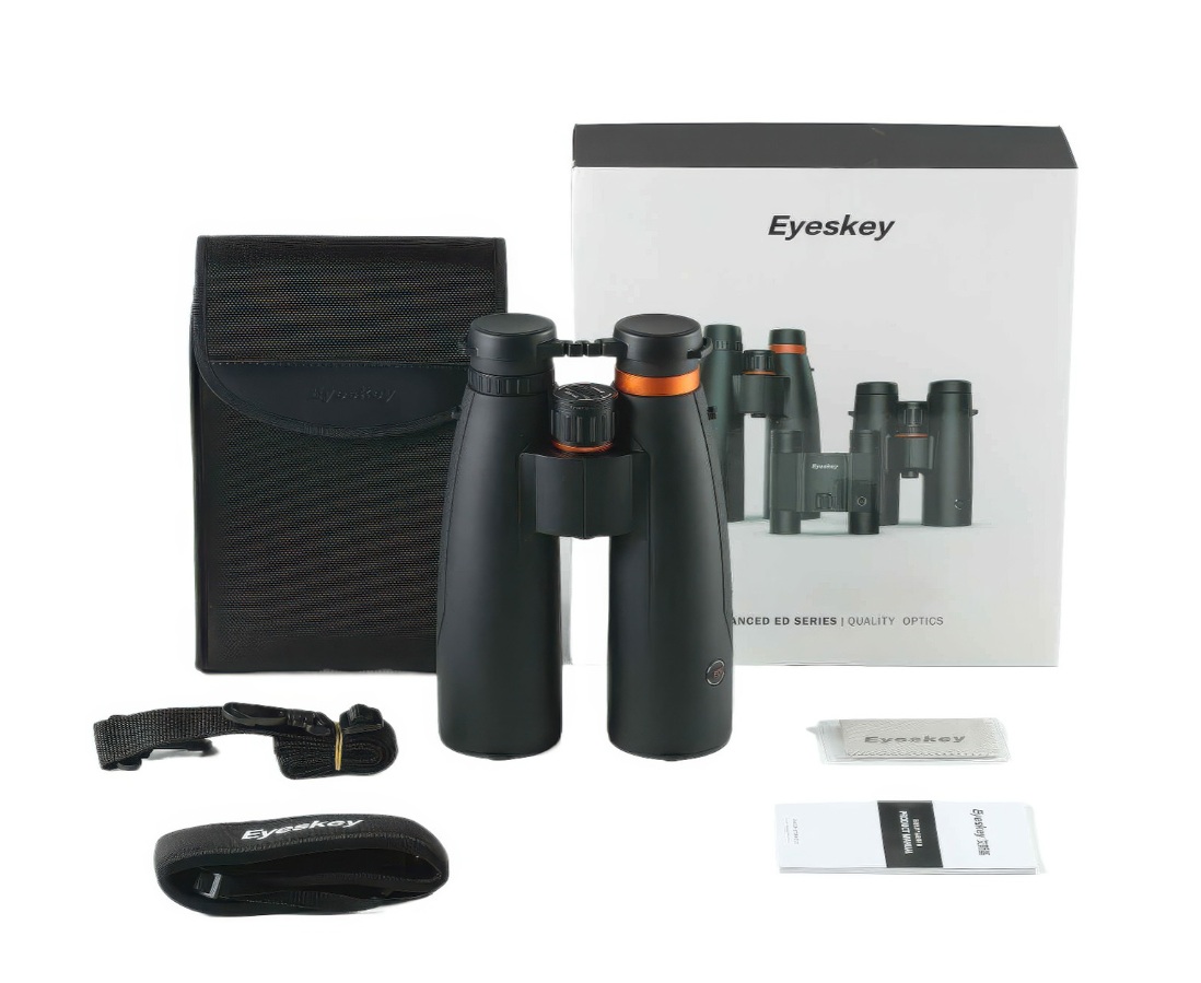 Бинокль Eyeskey SkyPower 15x56 представляет собой мощный оптический инструмент с 15-кратным увеличением, что делает его идеальным выбором для наблюдений на больших дистанциях. Использование линз с содержанием флюорита обеспечивает превосходное качество изображения за счет натуральной цветопередачи, повышенного разрешения и высокого уровня контраста. Благодаря выровненному полю зрения устраняются сферические аберрации и искажения по краям изображения, что позволяет получить ровную и чёткую картинку по всему полю зрения.