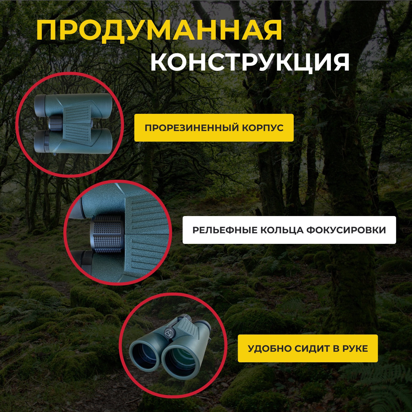 - благодаря влагостойкости бинокль можно использовать в условиях высокой влажности или в дождливую погоду, не беспокоясь о потере качества изображения;