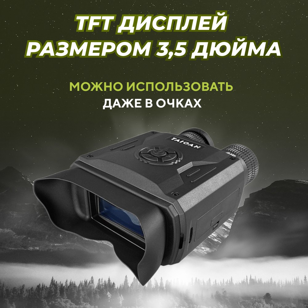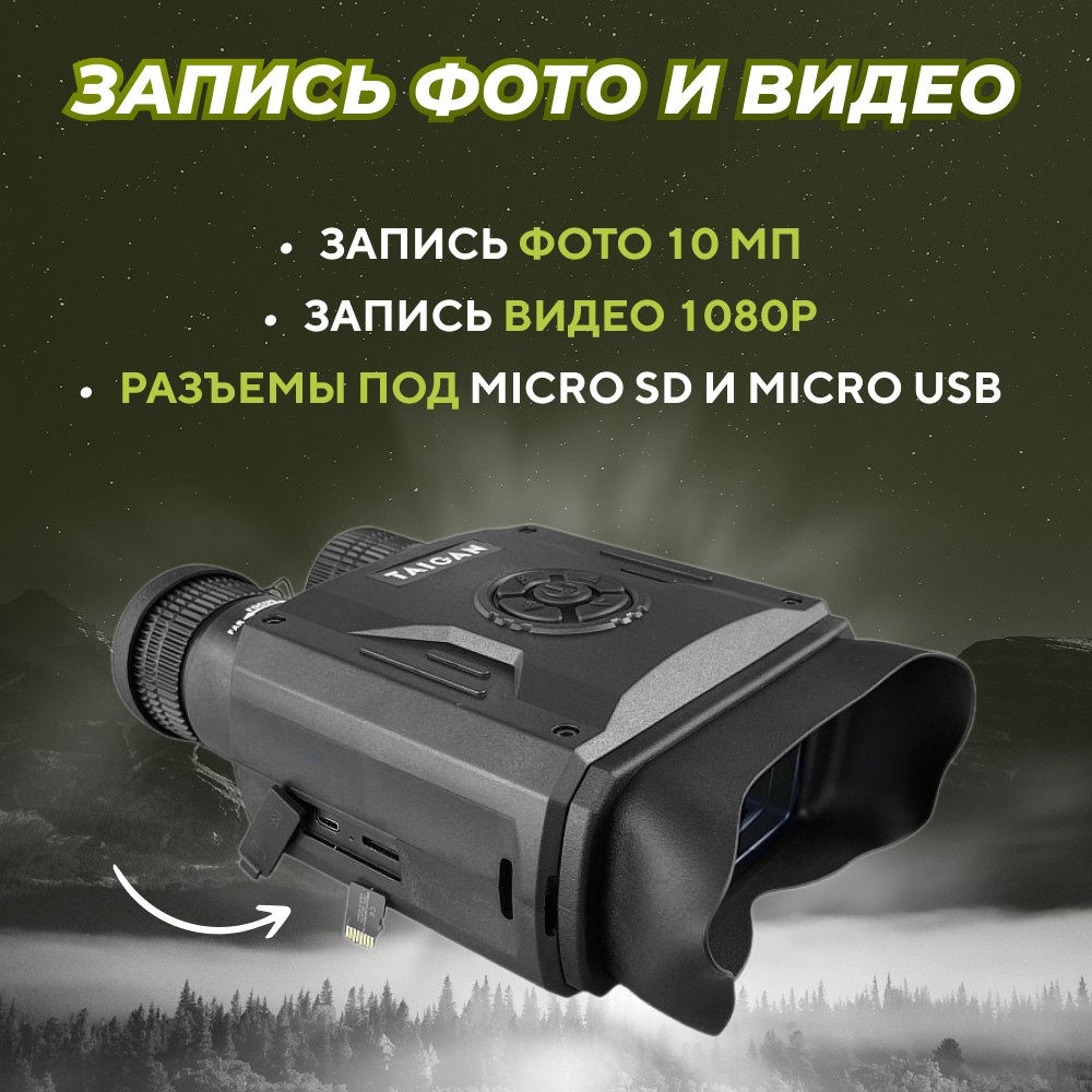 Taigan NV 800 pro – цифровой бинокль дневного и ночного видения с инфракрасной подсветкой, который можно использовать в полной темноте или при слабом освещении. Оснащен функциями фотосъемки, видеосъемки, воспроизведения.