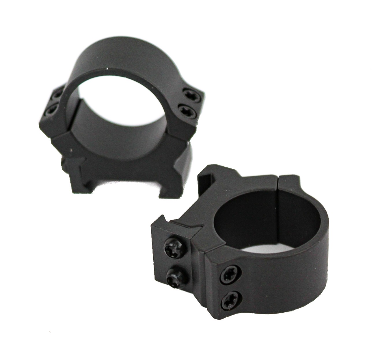 Крепления выполнены полностью из стали и имеют специальные противоскользящие пазы во внутренней поверхности колец, которые обеспечивают более плотный контакт между кольцами и прицелом. Фиксируются данные кольца при помощи двух боковых винтов. Верхние половинки колец крепятся к нижним при помощи 2-х винтов с каждой стороны.