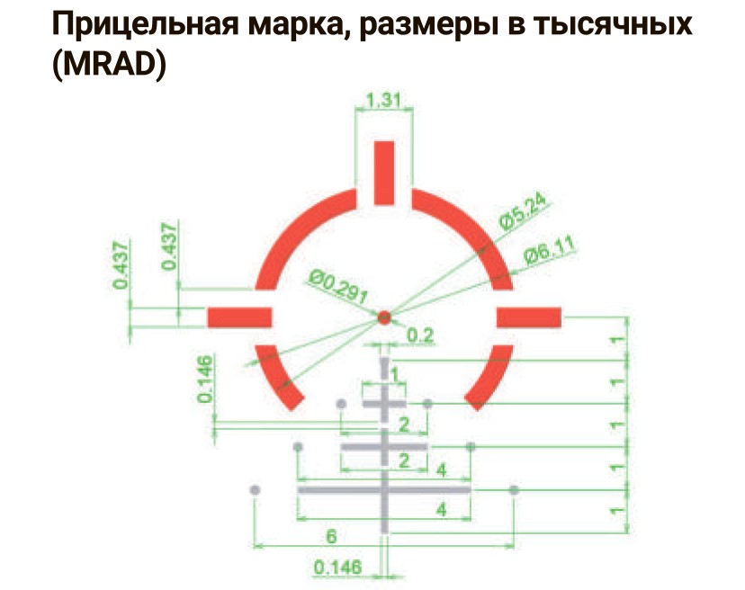 Количество уровней яркости подсветки прицельной сетки: 8 дневных + 2 ночных;
