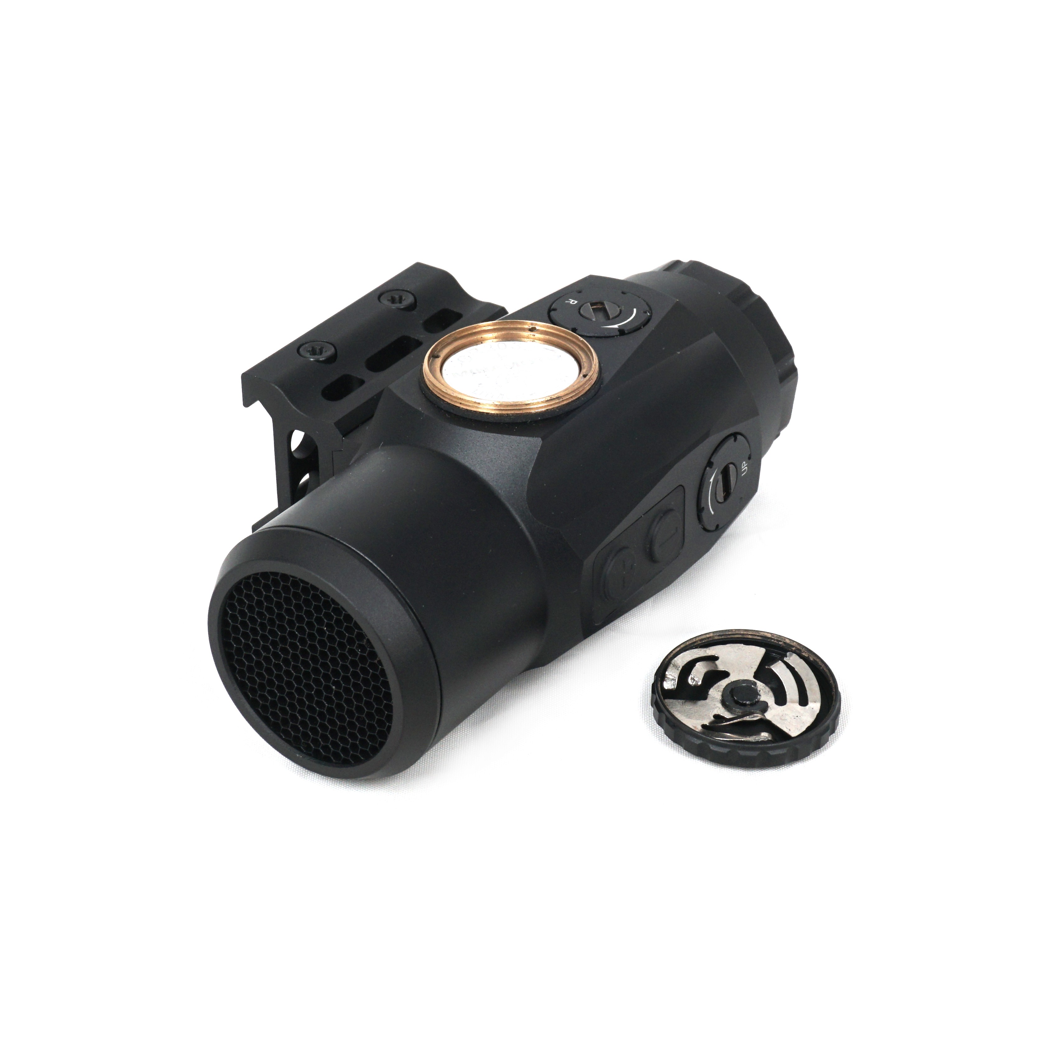 Питание подсветки обеспечивает литиевая батарея типоразмера CR2032, позволяющая эксплуатировать призматик с включенной подсветкой прицельной сетки на протяжении 30 000 часов. Батарейный отсек закрыт герметичной крышкой и находится сбоку прицела.