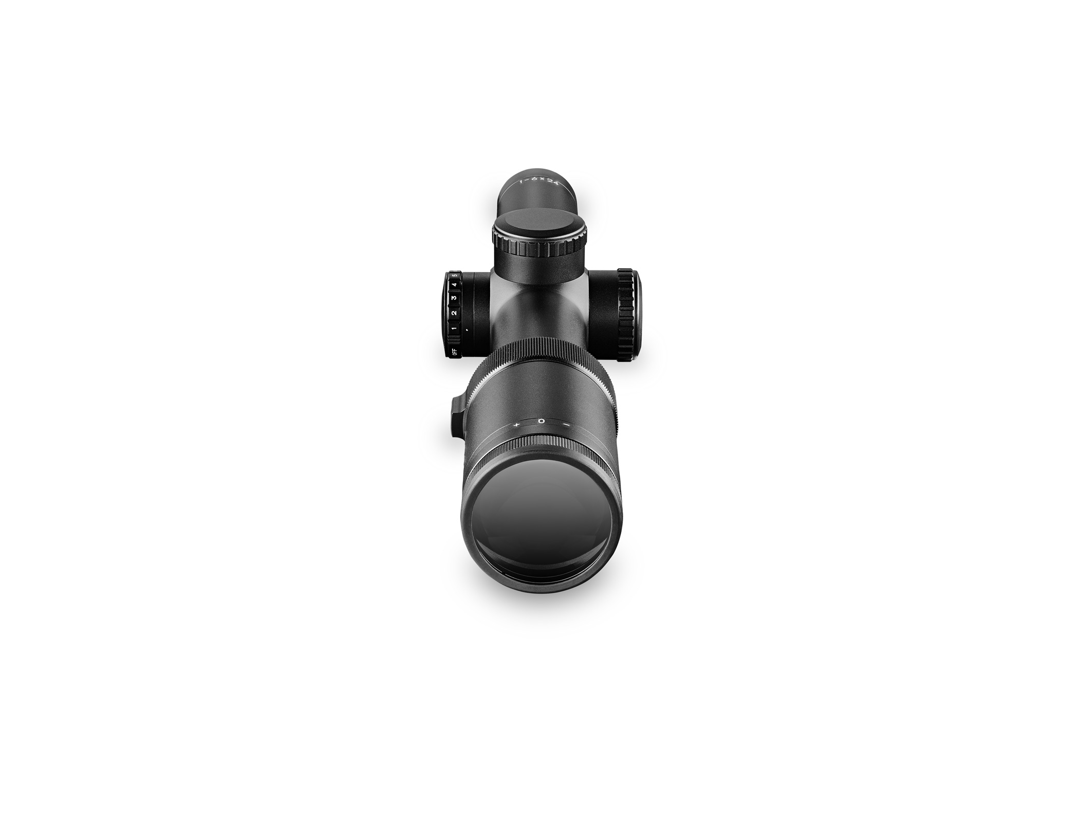 Сетка с подсветкой красного цвета. Прицельная марка расположена во второй фокальной плоскости (SFP). Возможен ввод горизонтальной и вертикальной поправок; цена клика барабанчиков регулировок - 1/4 МОА.