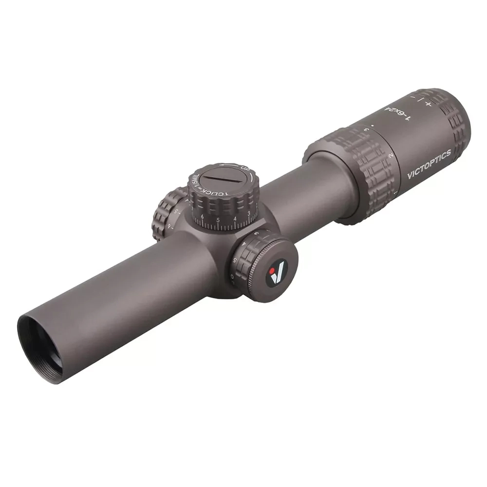 Прицел VictOptics S6 1-6x24 LPVO Coyote FDE имеет довольно большое поле зрения в 36,3м на 91м при минимальной кратности. Это позволяет на малых дистанция целиться двумя глазами, быстро отслеживая передвижение любой, даже малоразмерной цели. Оптимальное удаление выходного зрачка в 101мм даёт возможность вести стрельбу из крупных калибров без опасений травмировать глаз. Полное отсутствие черного кольца вокруг изображения, существенно расширяет возможности применения прицела не только на спортивных состязаниях, но и при динамичном темпе охоты.
