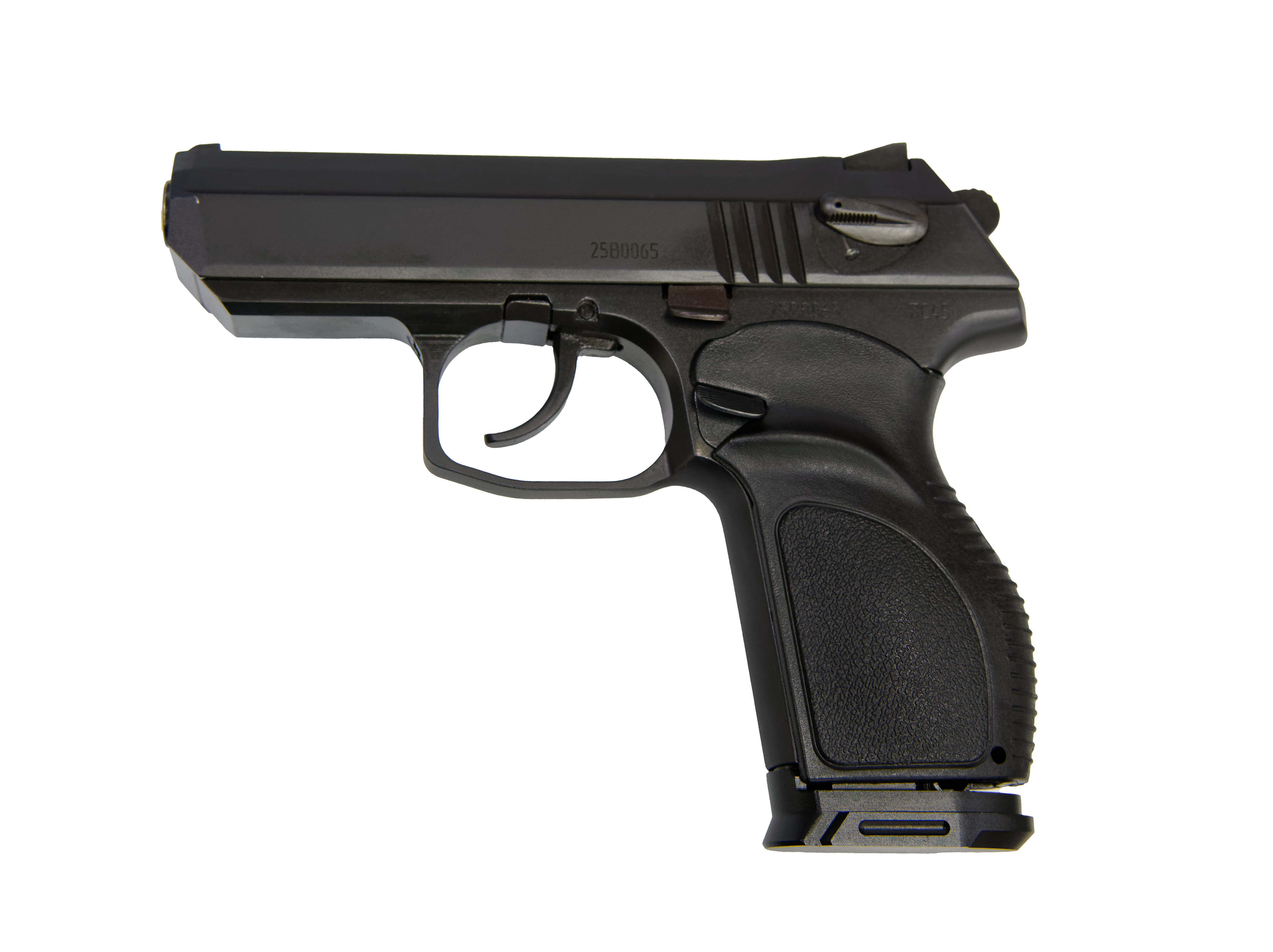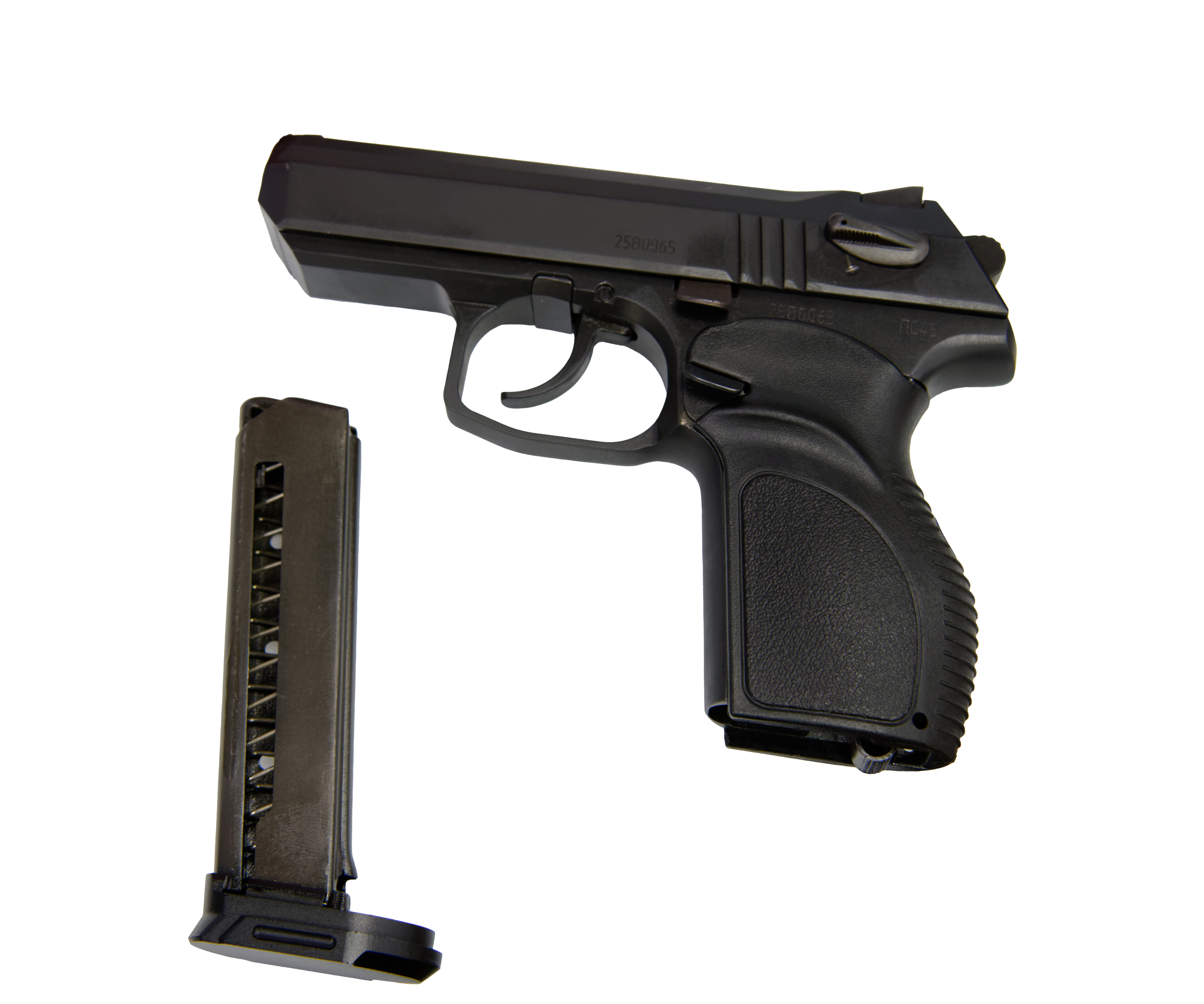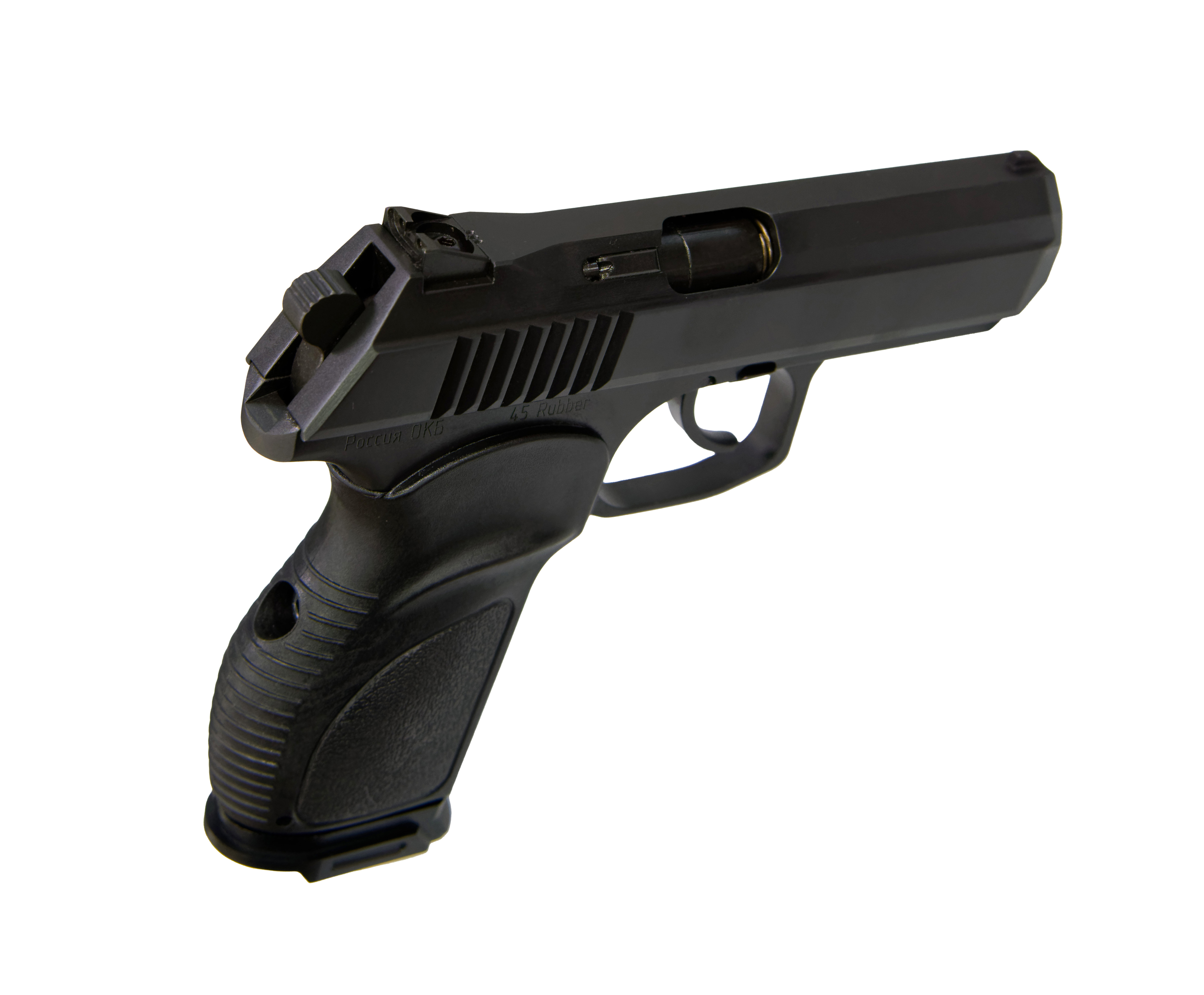 Пистолет огнестрельный ограниченного поражения модели ПС45. Для стрельбы используются патроны калибра 45 Rubber с резиновыми пулями.