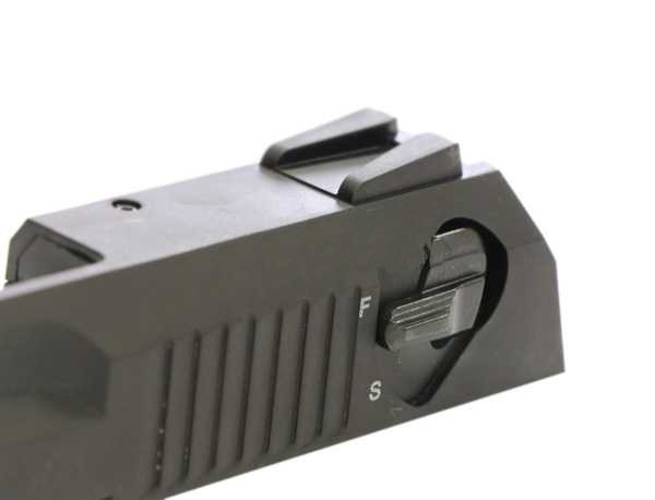 -большая спусковая скоба и наличие флажков предохранителя с двух сторон затворной рамы, которые позволяют стрелять не только правой, но и левой рукой,