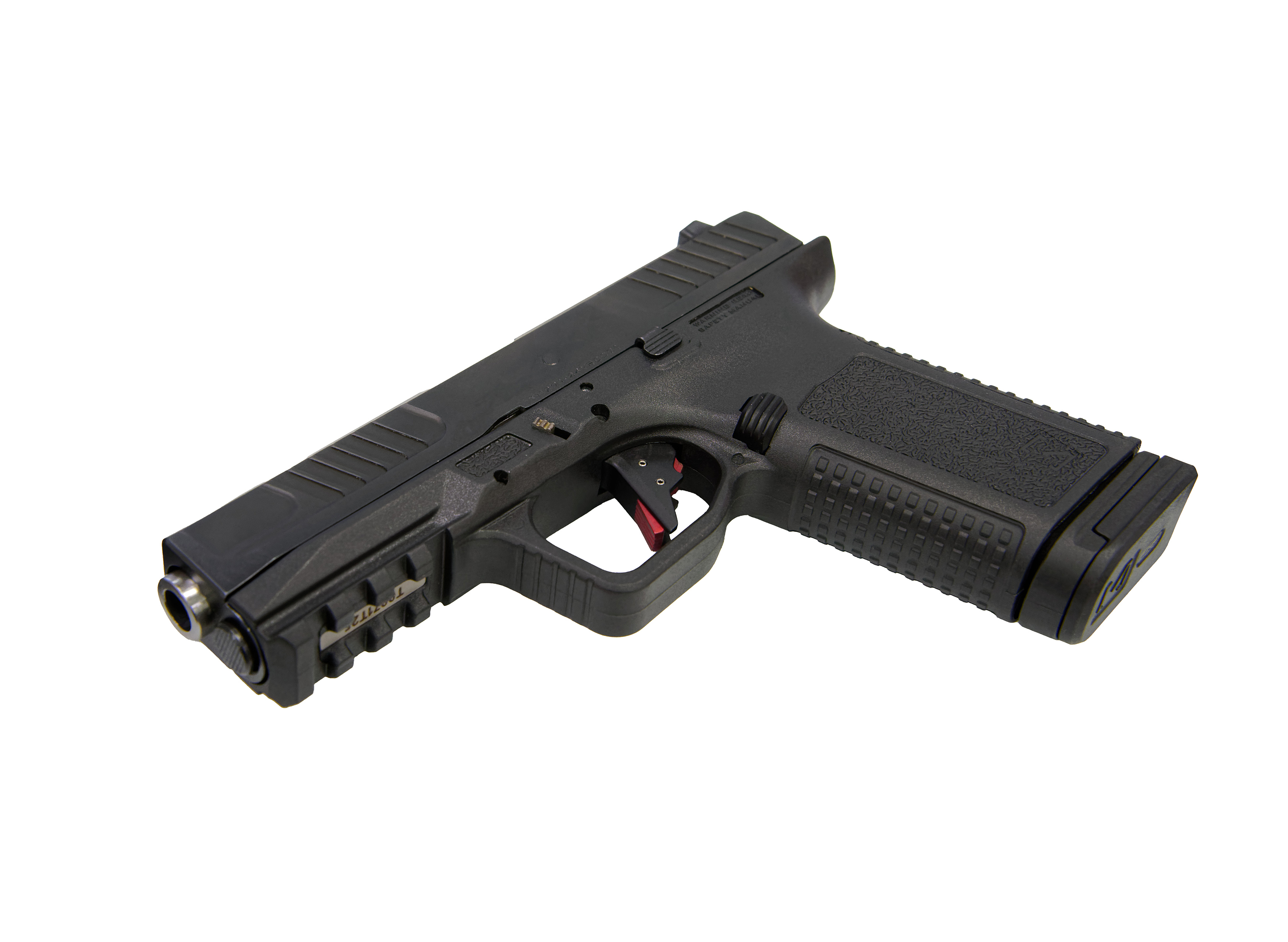 - Универсальность управления — двустороннее расположение органов управления позволяет комфортно использовать пистолет как правшам, так и левшам;