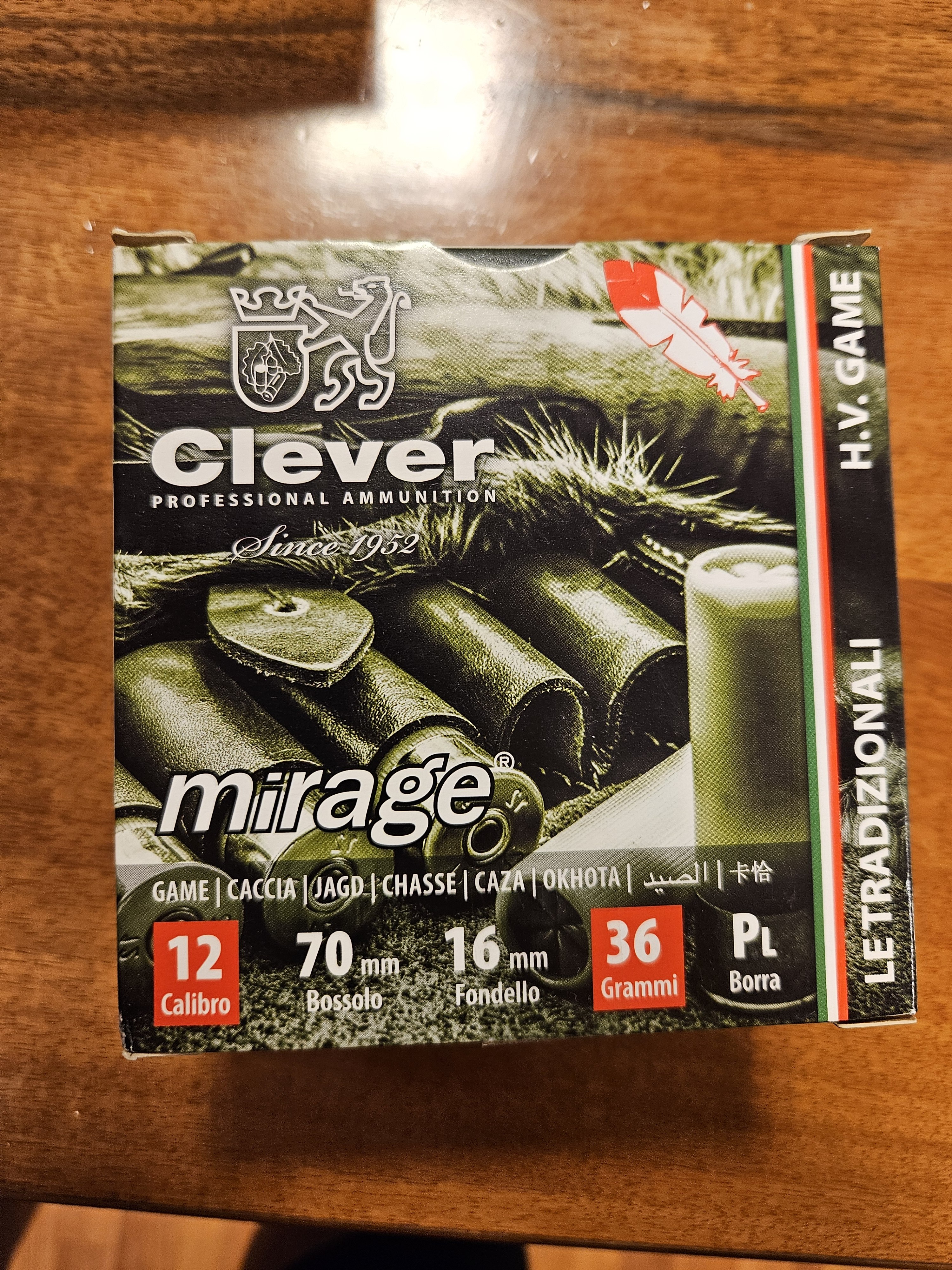 Патрон для охотничьего гладкоствольного оружия 12 калибра. Произведен в Италии на патронном заводе "Clever Mirage". При изготовлении патрона использована пластмассовая гильза с различной высотой металлического основания в зависимости от назначения и развиваемого давления пороховых газов. Создан для охотников на уток и гусей и для тех ситуаций, где высокая скорость и сверхдлинные дистанции являются определяющими.
