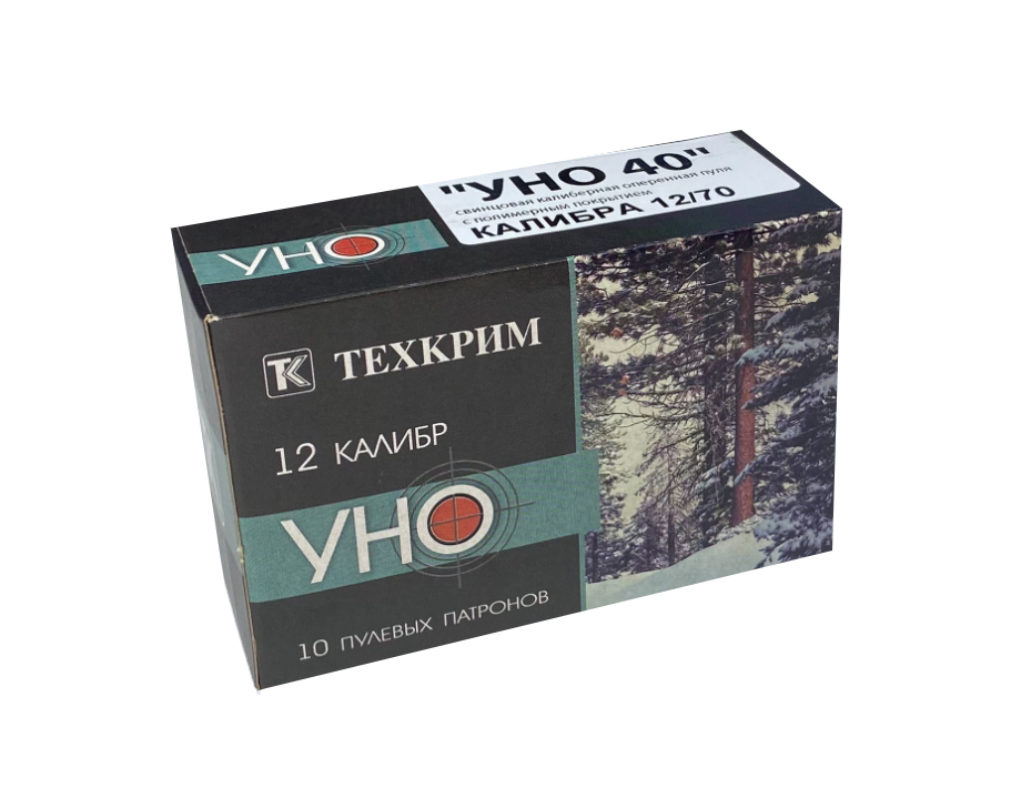 Патроны серии УНО снаряжены свинцовыми оперенными пулями. Хвостовик пули оригинальной формы выполняет роль стабилизатора, что предупреждает колебания снаряда на дистанции до 120 м. Это обеспечивает улучшенную кучность стрельбы на дистанции до 100 м. Продольные наклонные ребра пули позволяют вести стрельбу из ружей с дульным сужением до 1,25 мм. Пуля «УНО 40» в калибре 12х70 предназначена для охоты и обладает высоким останавливающим действием.